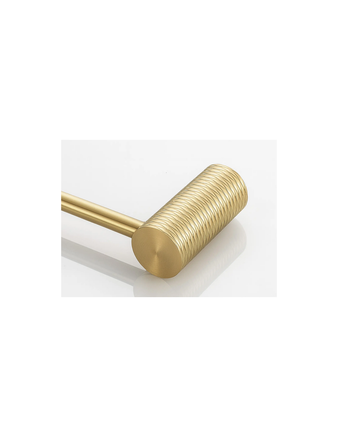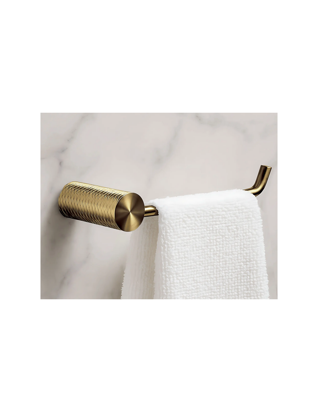 Håndklædeholder udført i et moderne design af børstet guldfarvet lakeret metal. Holderen måler 16,5 cm i bredden.