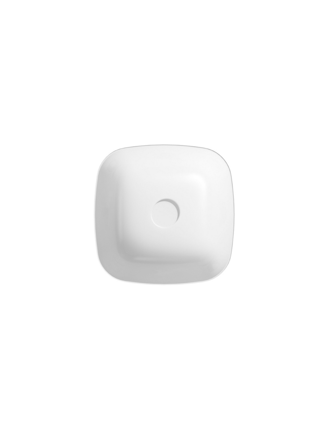 Bordmonteret firkantet håndvask udført i et moderne design af blank hvid ROCKLITE keramik. Håndvasken måler 38 x 38 cm i bredde og dybde og leveres med pop-up bundventil. Håndvasken er uden overløb.