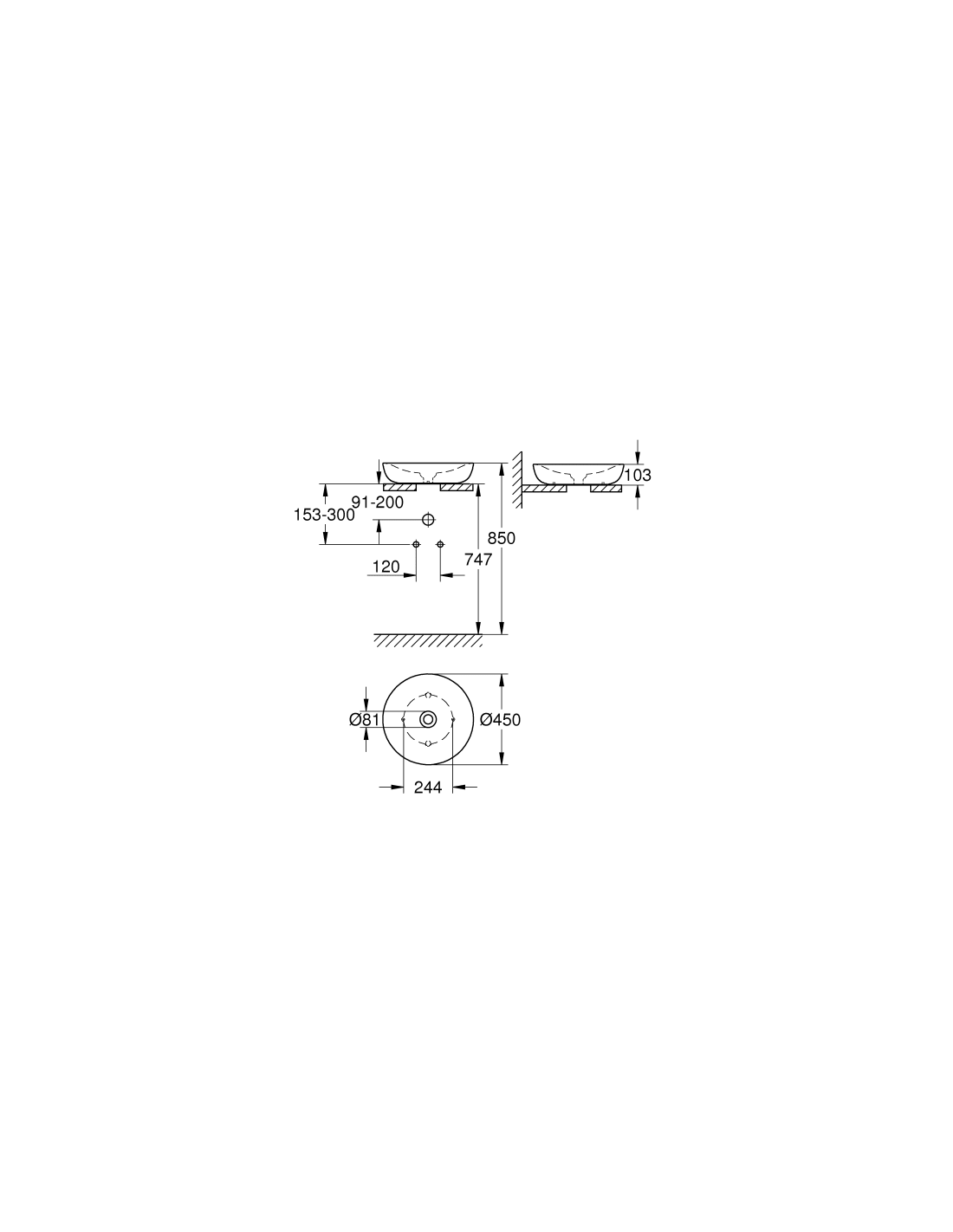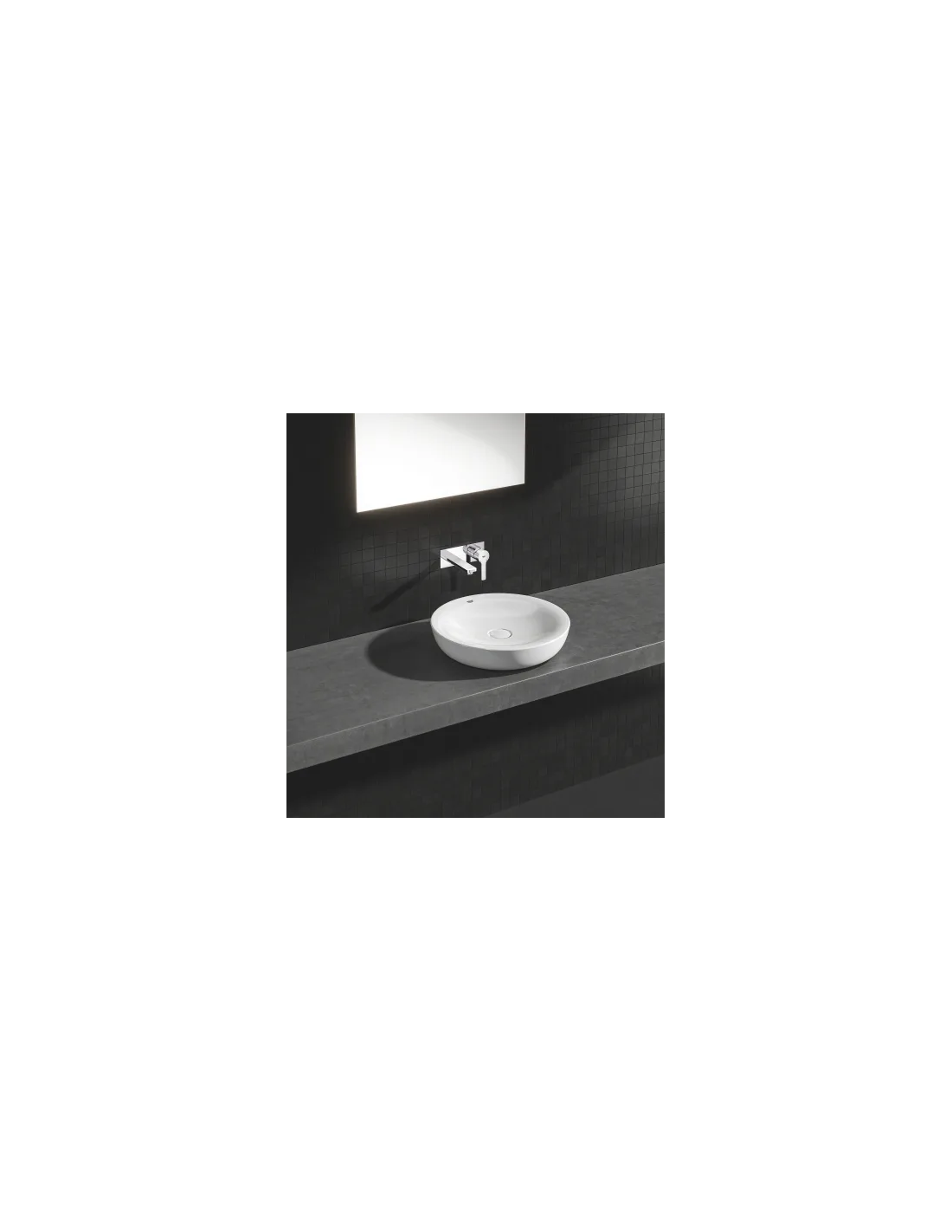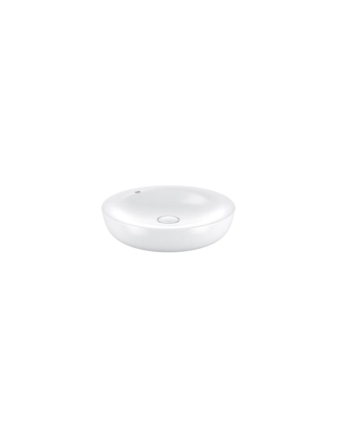 ESSENCE Rund bordmonteret håndvask udført i et moderne design af blank hvid keramik. Håndvasken måler 10,3 cm i højden og 45 cm i diameter. Leveres med pop-up bundventil.