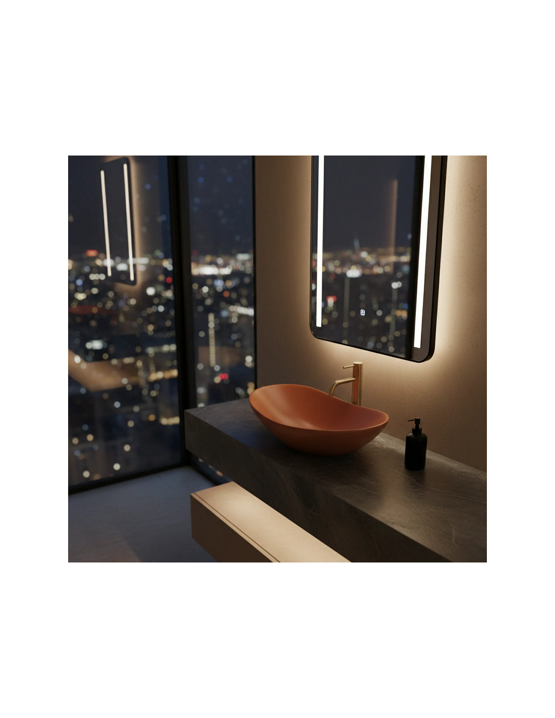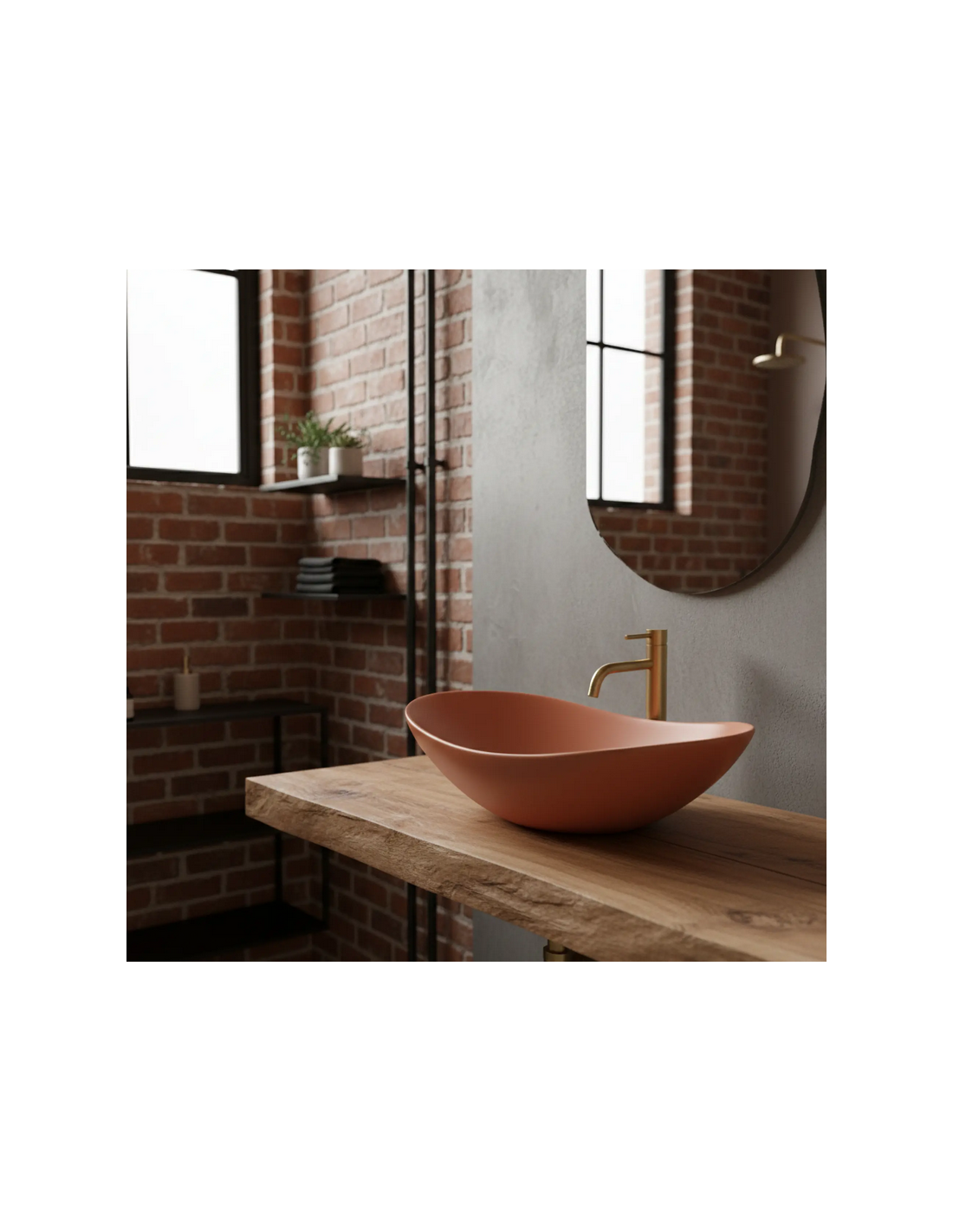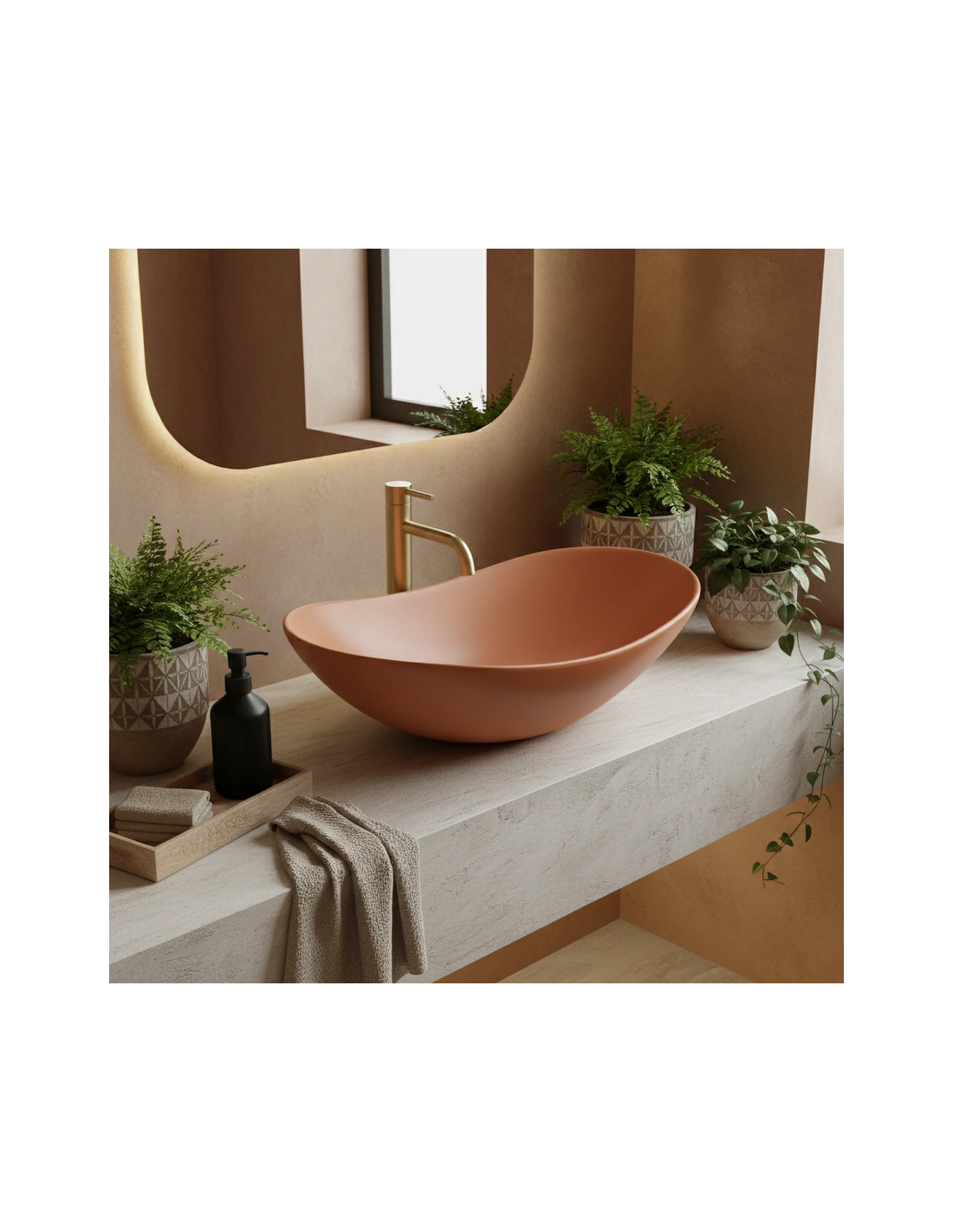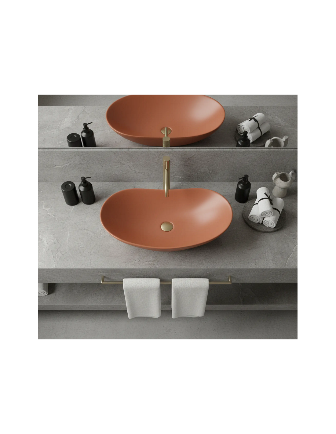 Bordmonteret bønneformet håndvask i keramik 61,5 x 35,5 cm - Mat kanelbrun