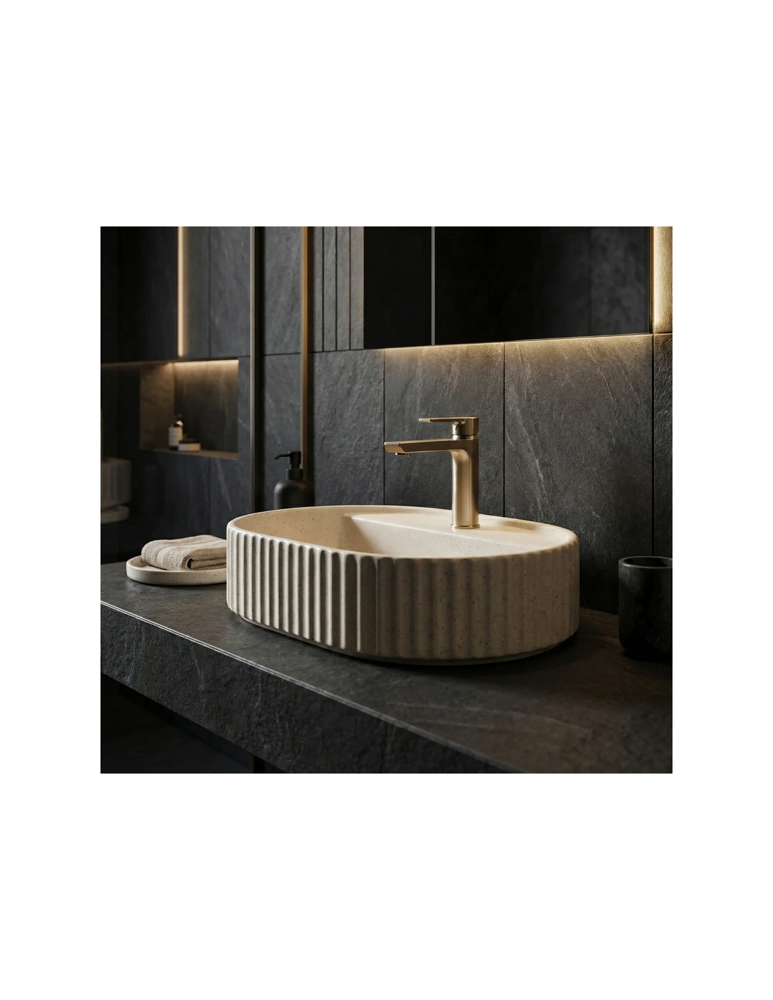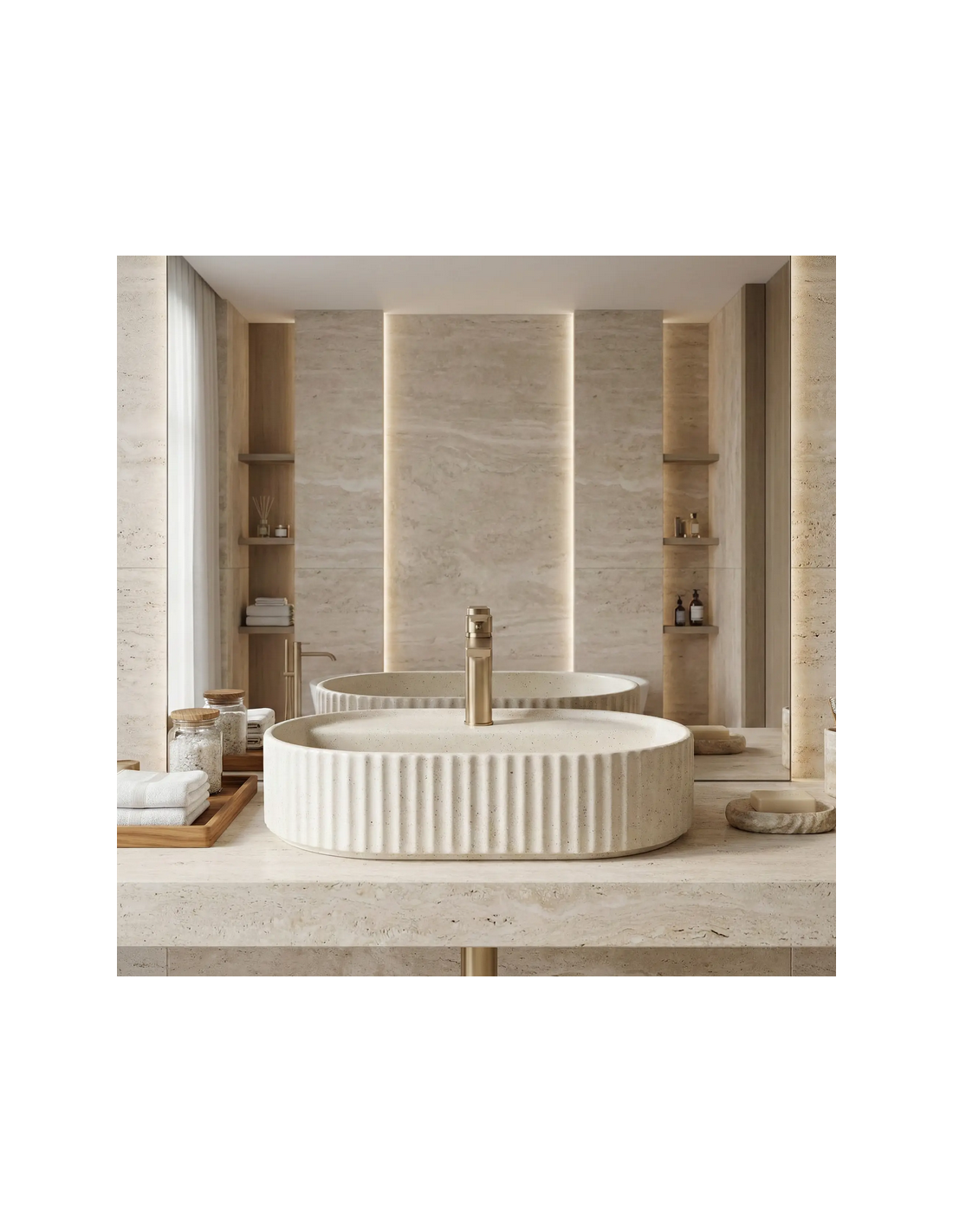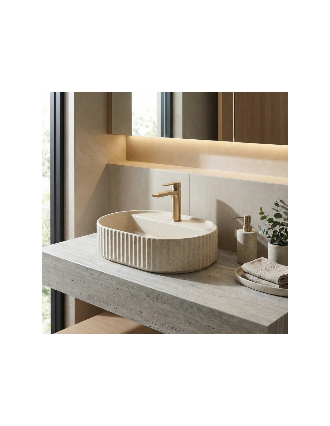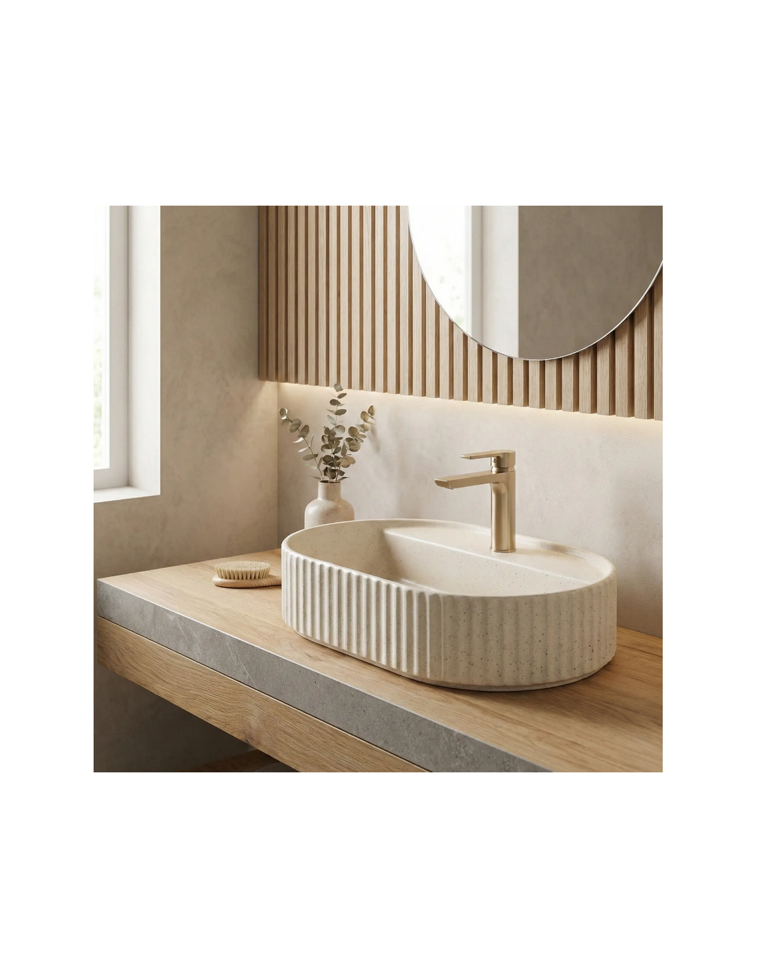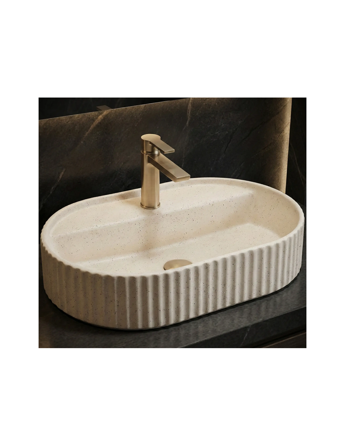 Bordmonteret oval håndvask i keramik 60 x 37 cm - Vanille