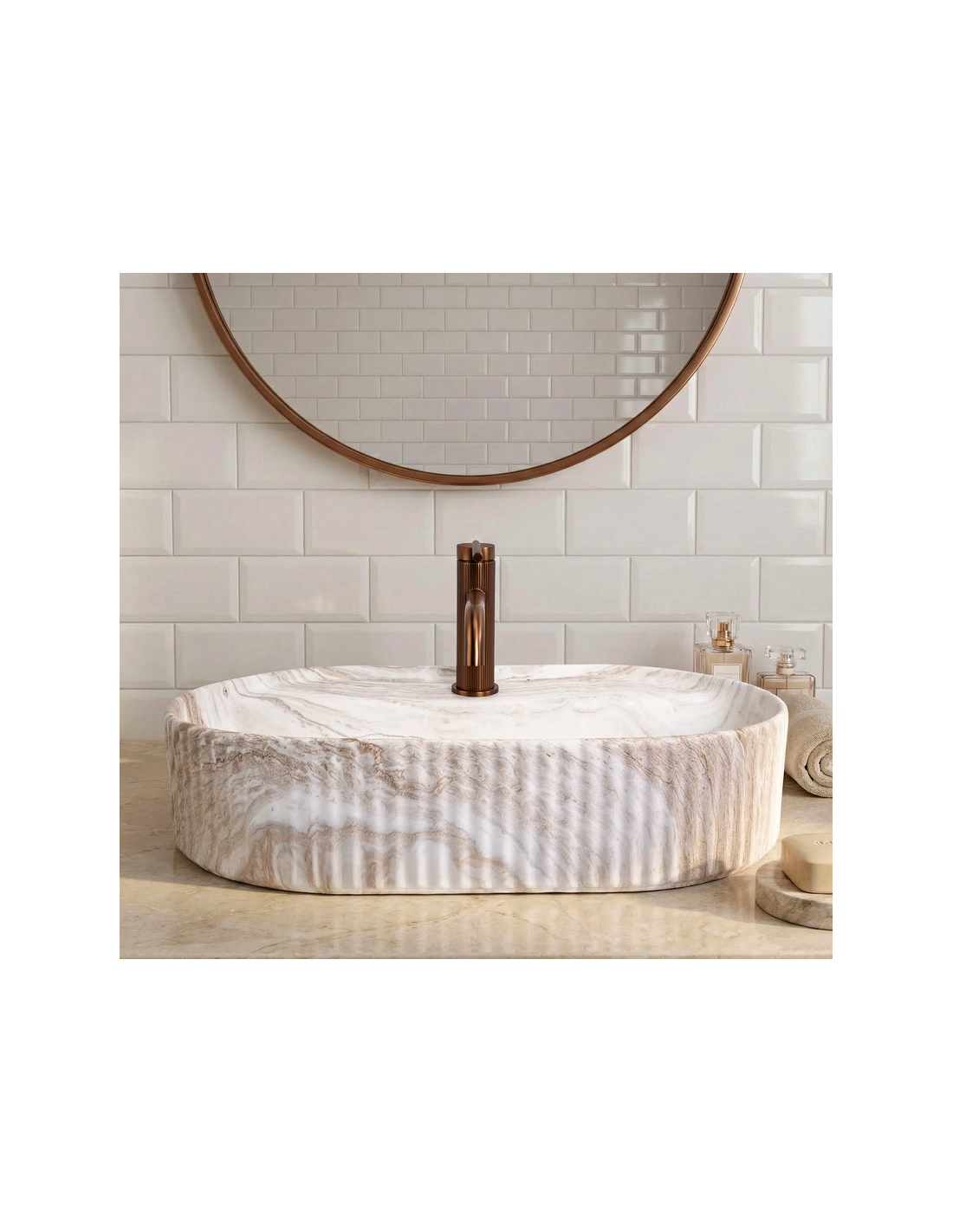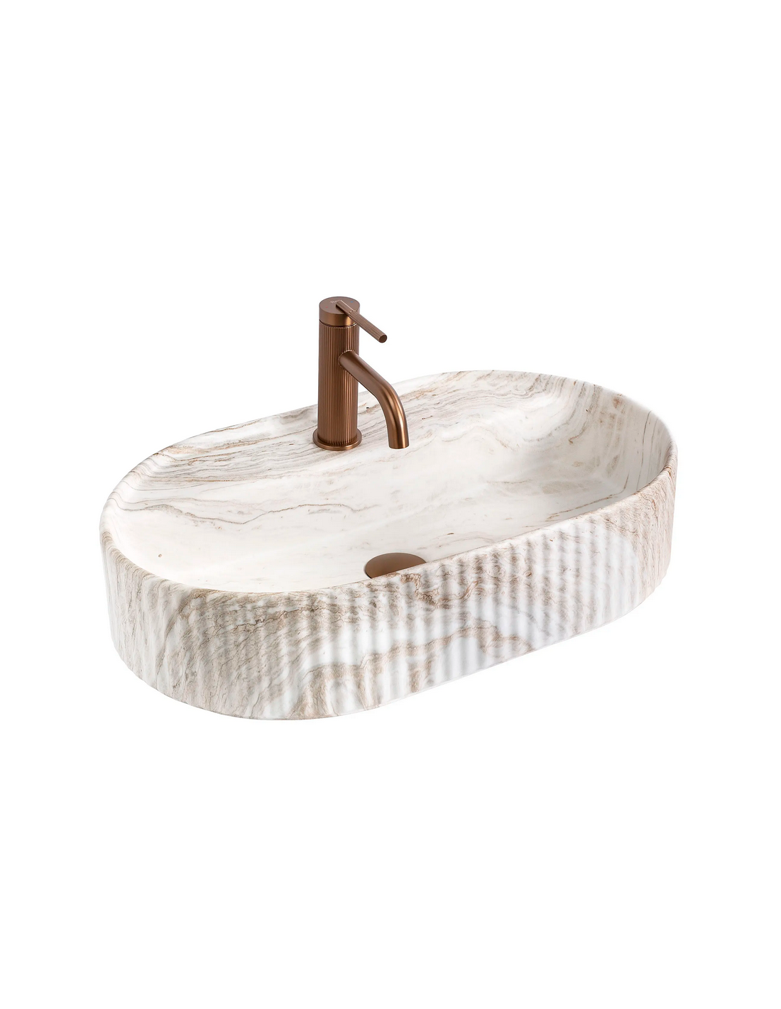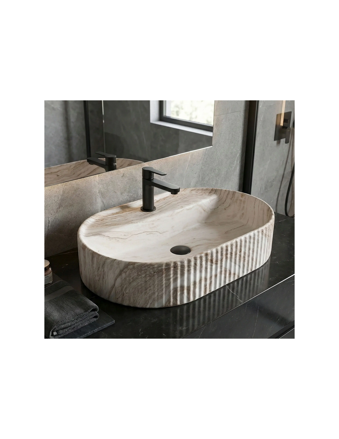 Bordmonteret oval håndvask i keramik 60 x 37 cm - Gråbrun marmor