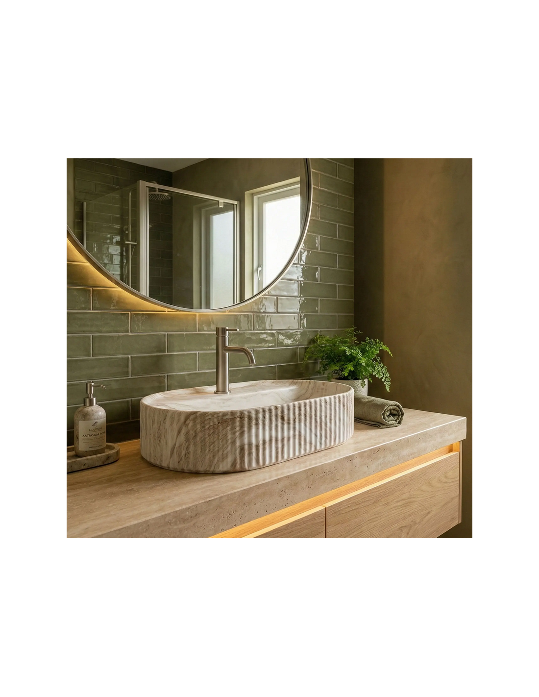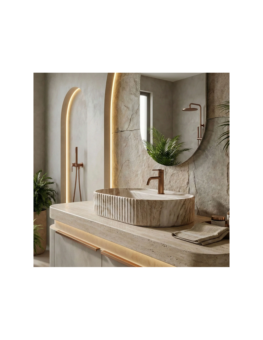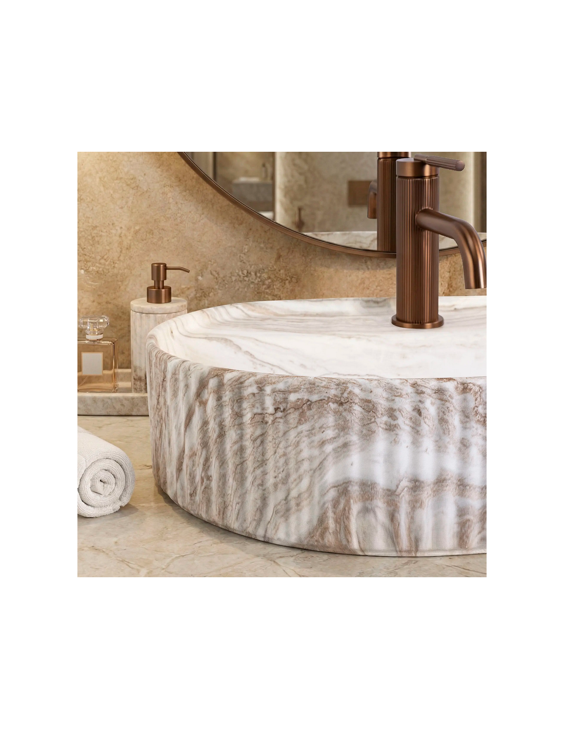 Bordmonteret oval håndvask i keramik 60 x 37 cm - Gråbrun marmor