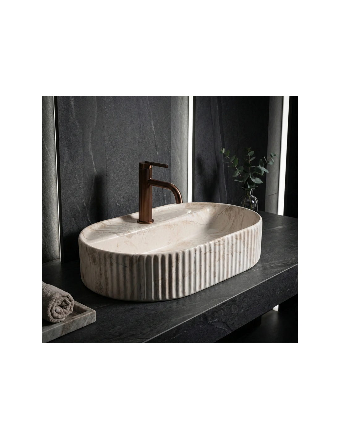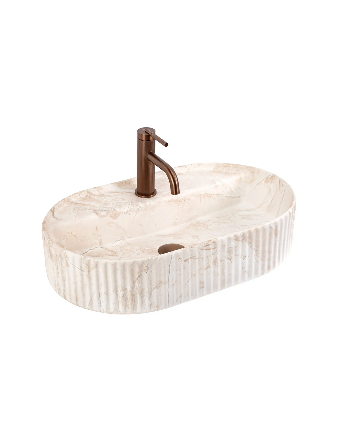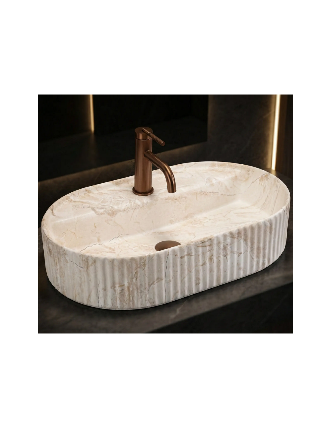 Bordmonteret oval håndvask i keramik 60 x 37 cm - Beige marmor
