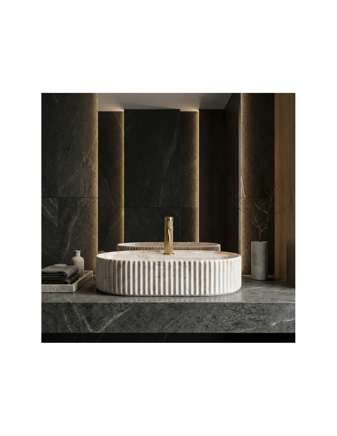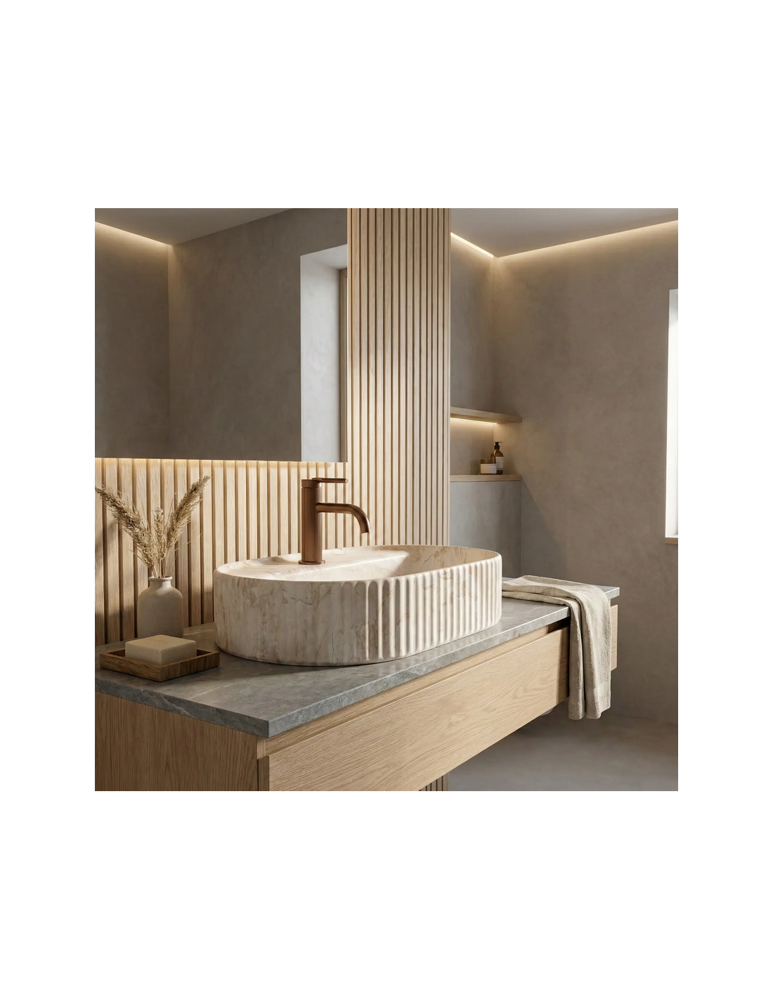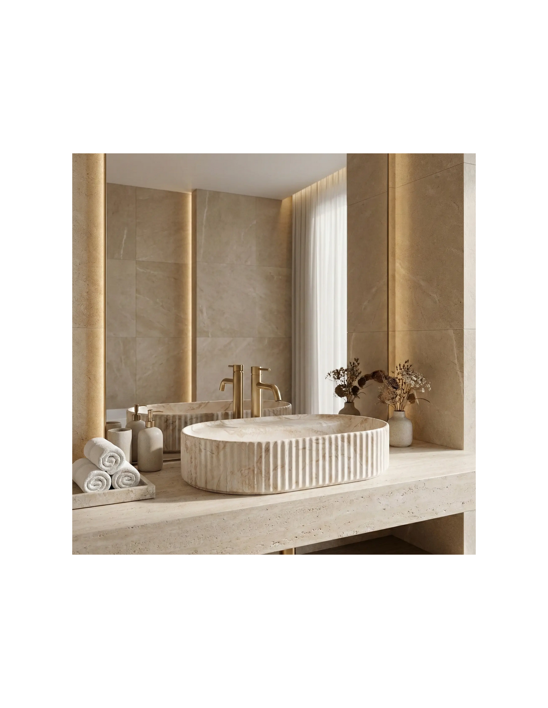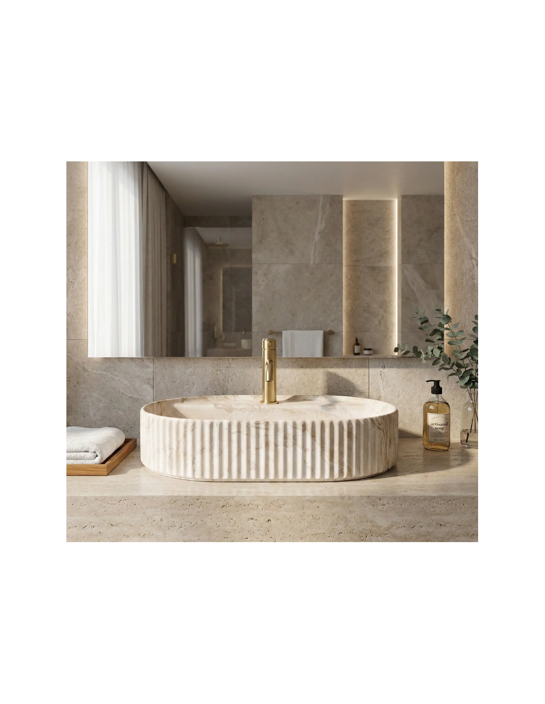 Bordmonteret oval håndvask i keramik 60 x 37 cm - Beige marmor