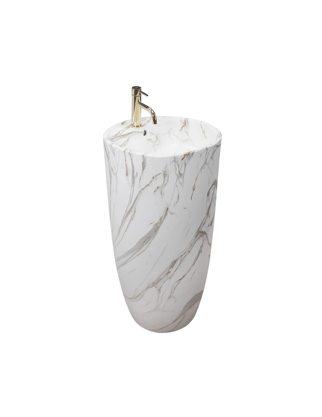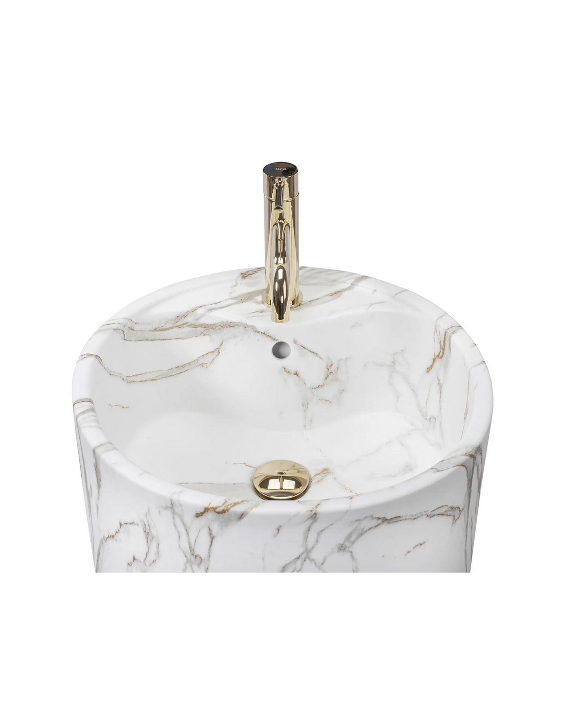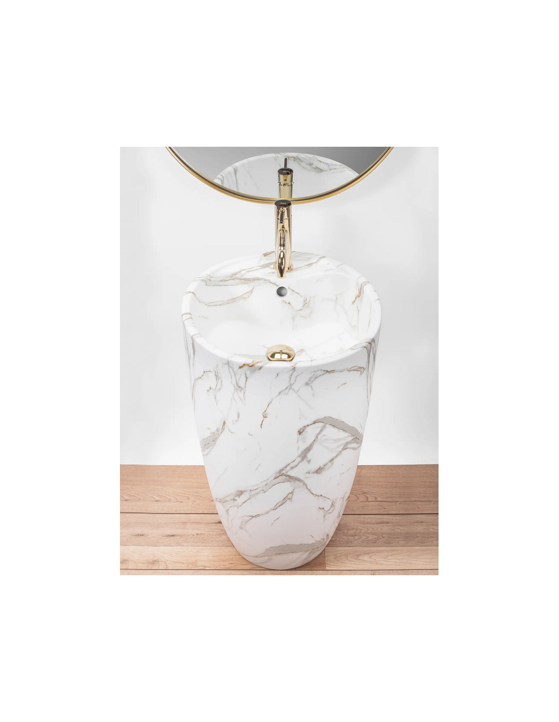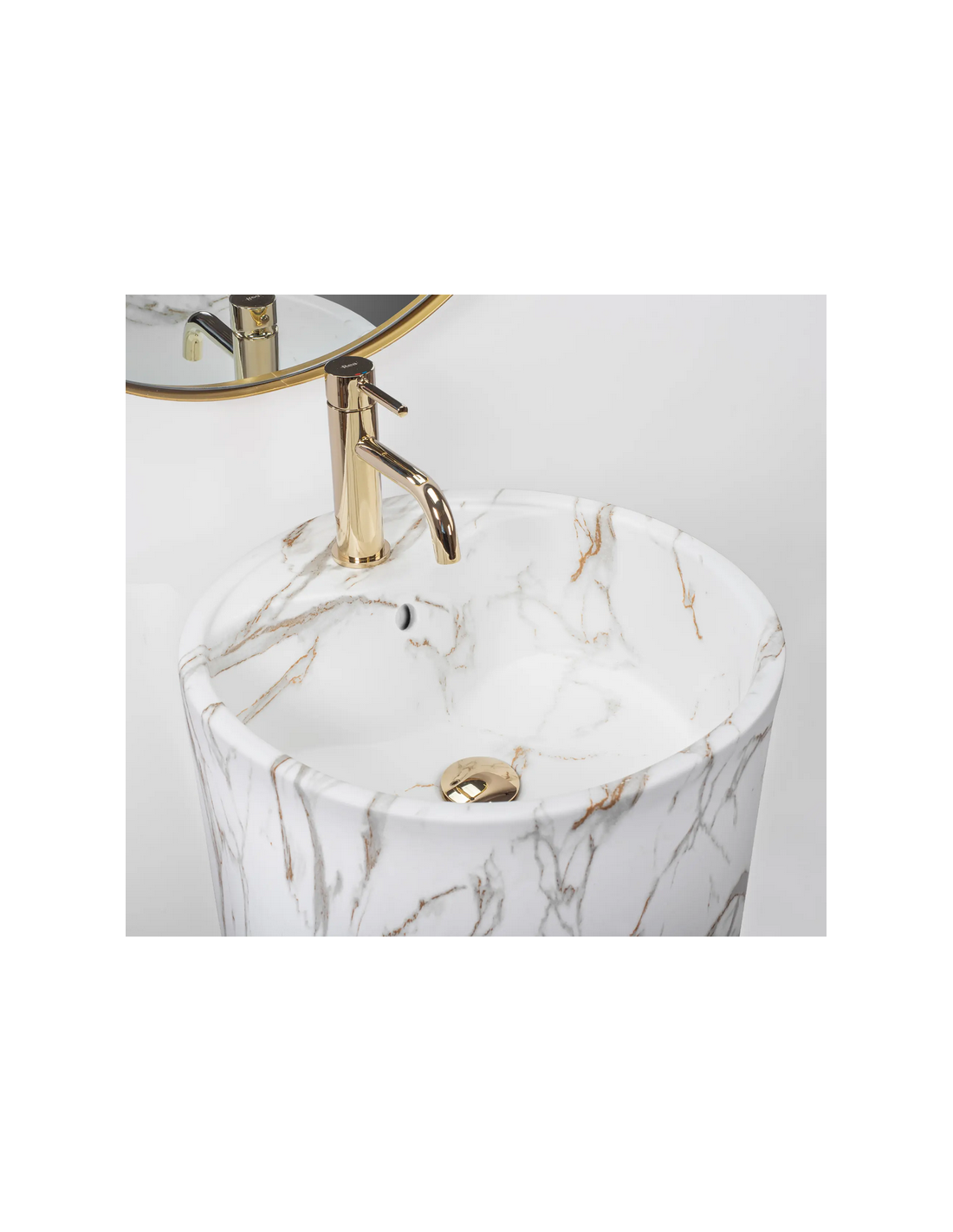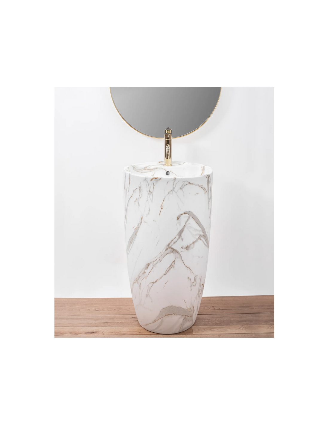 Gulvmonteret rund håndvask i keramik H84 x Ø45 cm - Hvid/Gråbrun marmor