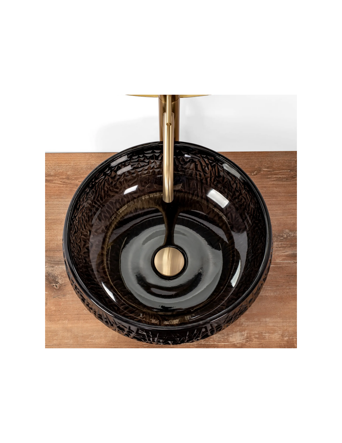 Bordmonteret rund håndvask i glas Ø42 cm - Klar sort