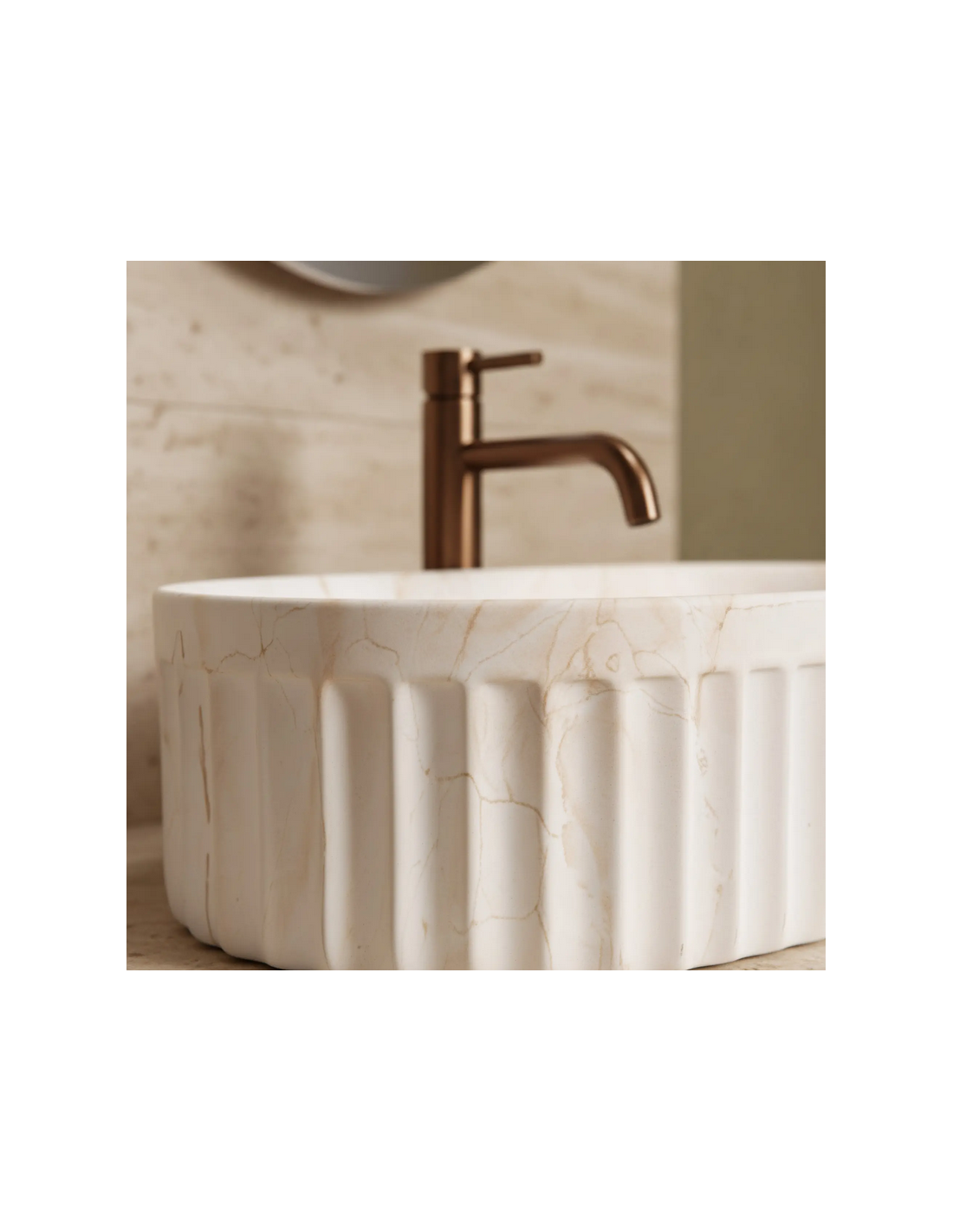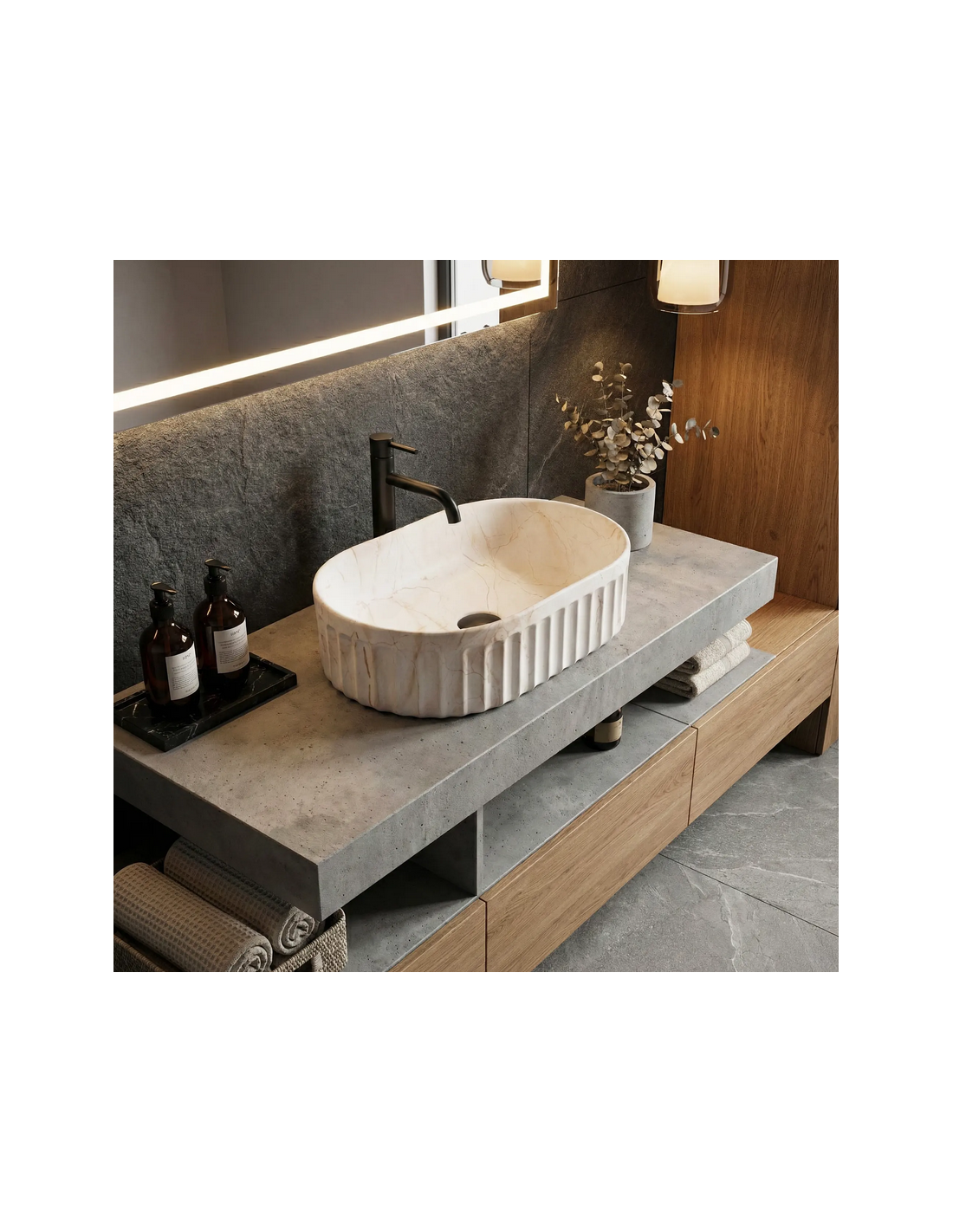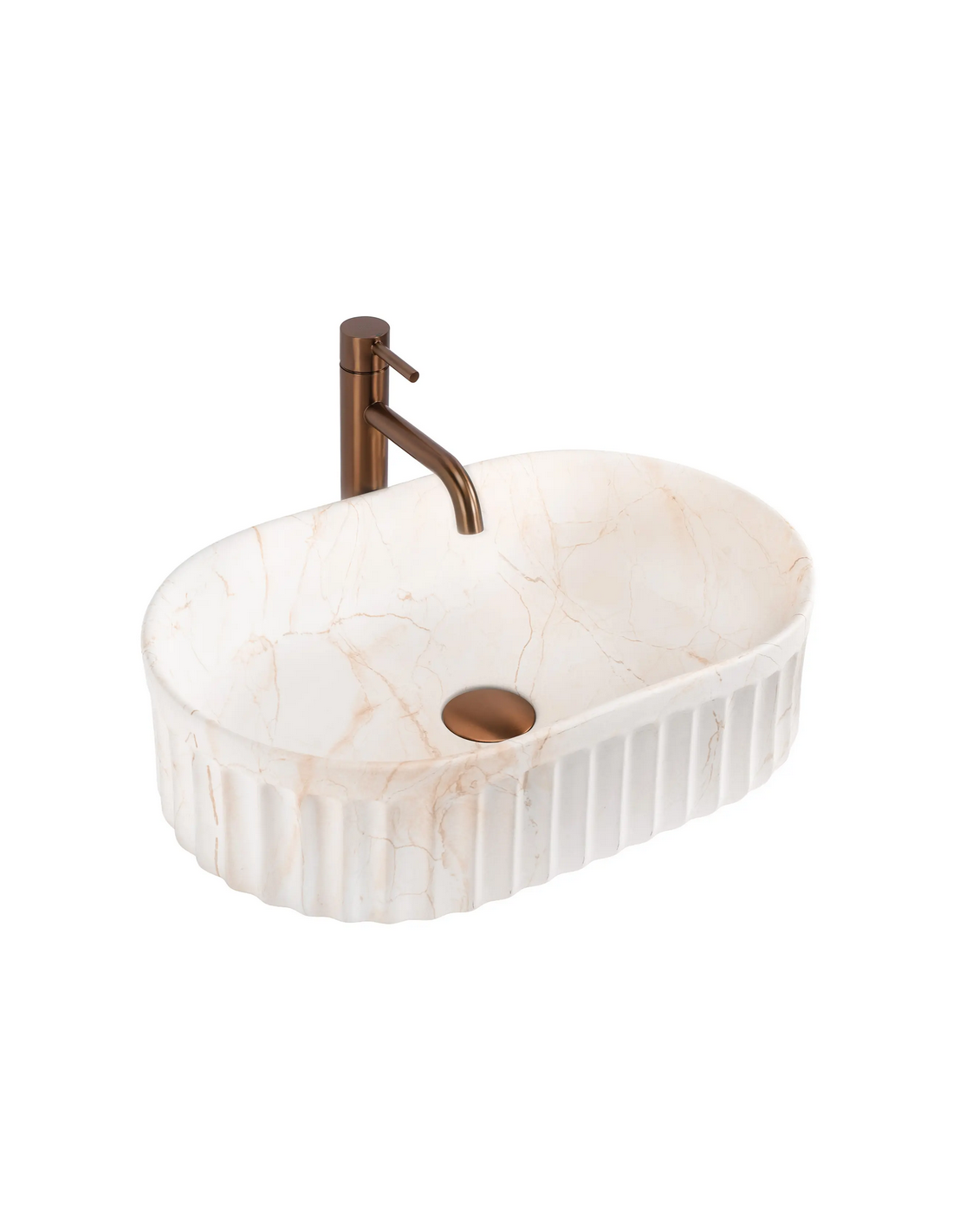 Bordmonteret oval håndvask i keramik 52 x 35 cm - Beige marmor