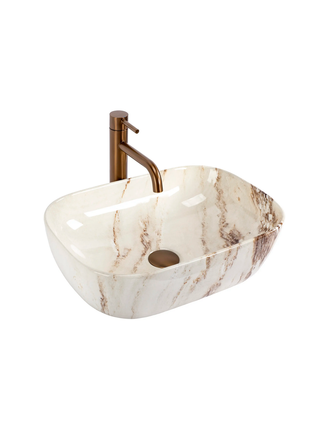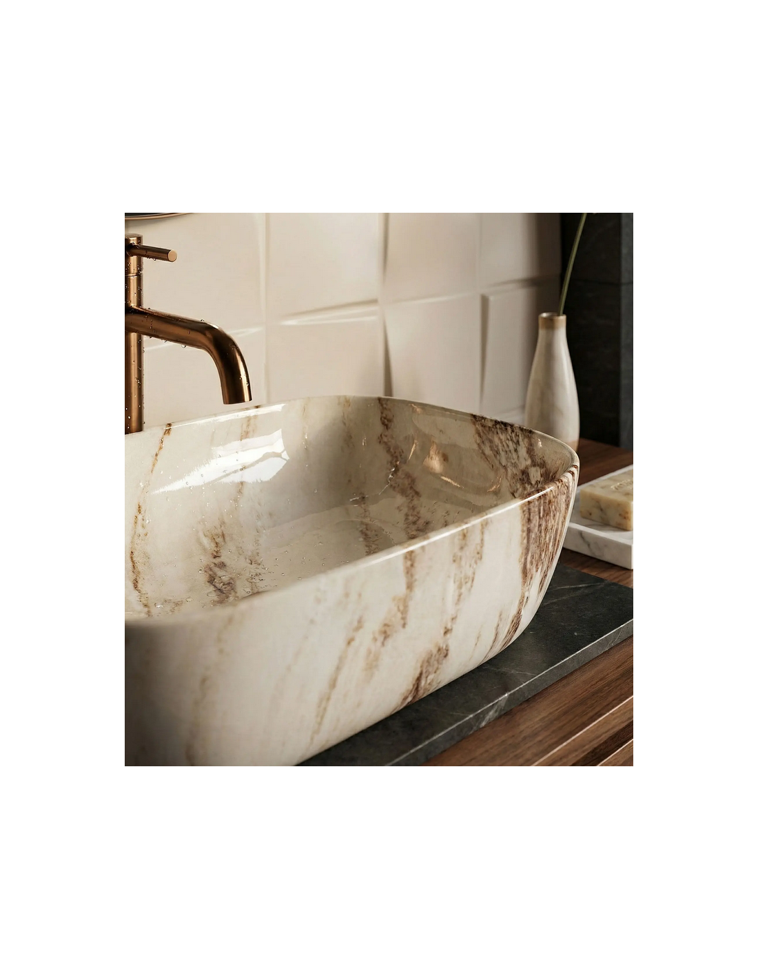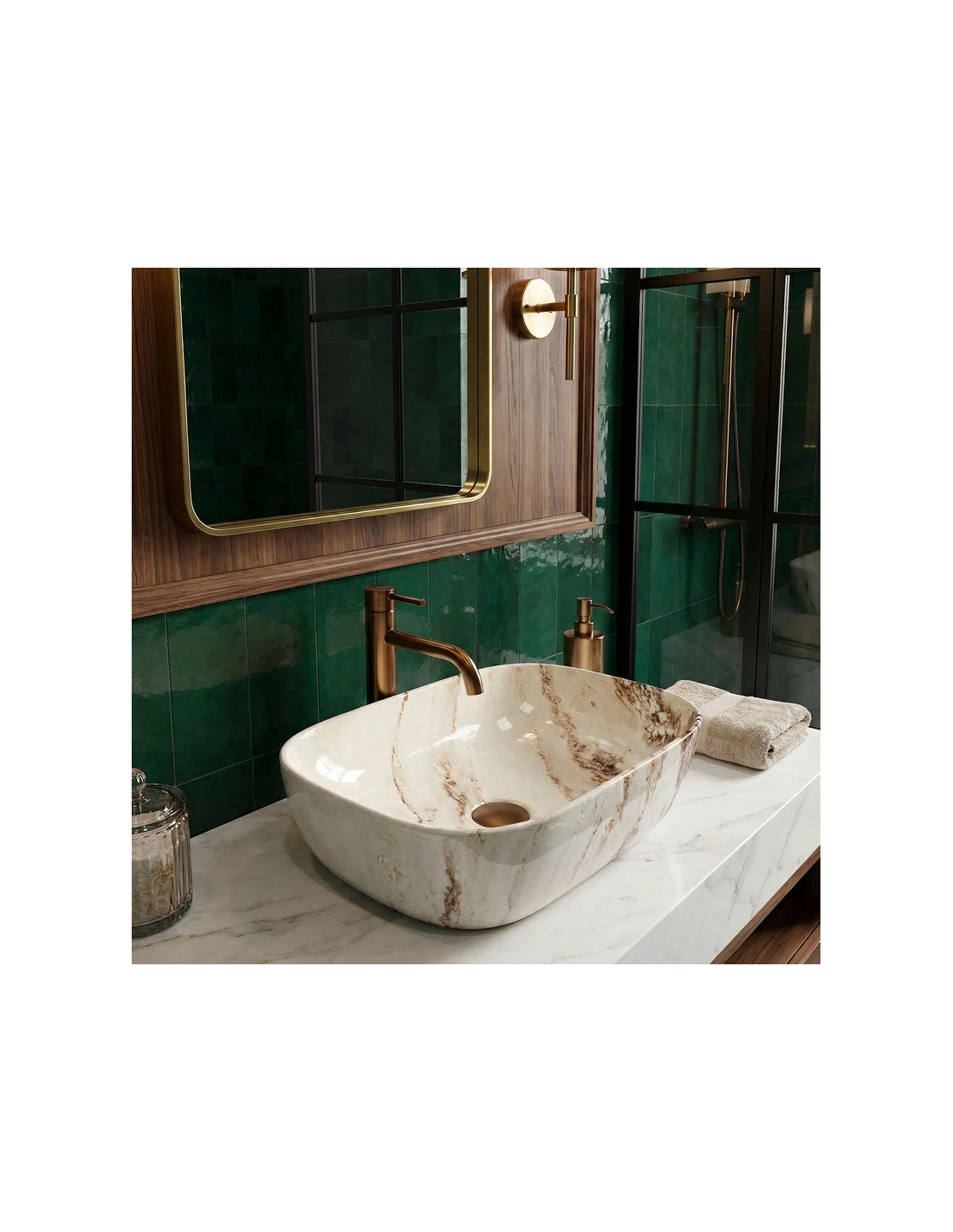 Bordmonteret rektangulær håndvask i keramik 46,5 x 33 cm - Cremebrun marmor
