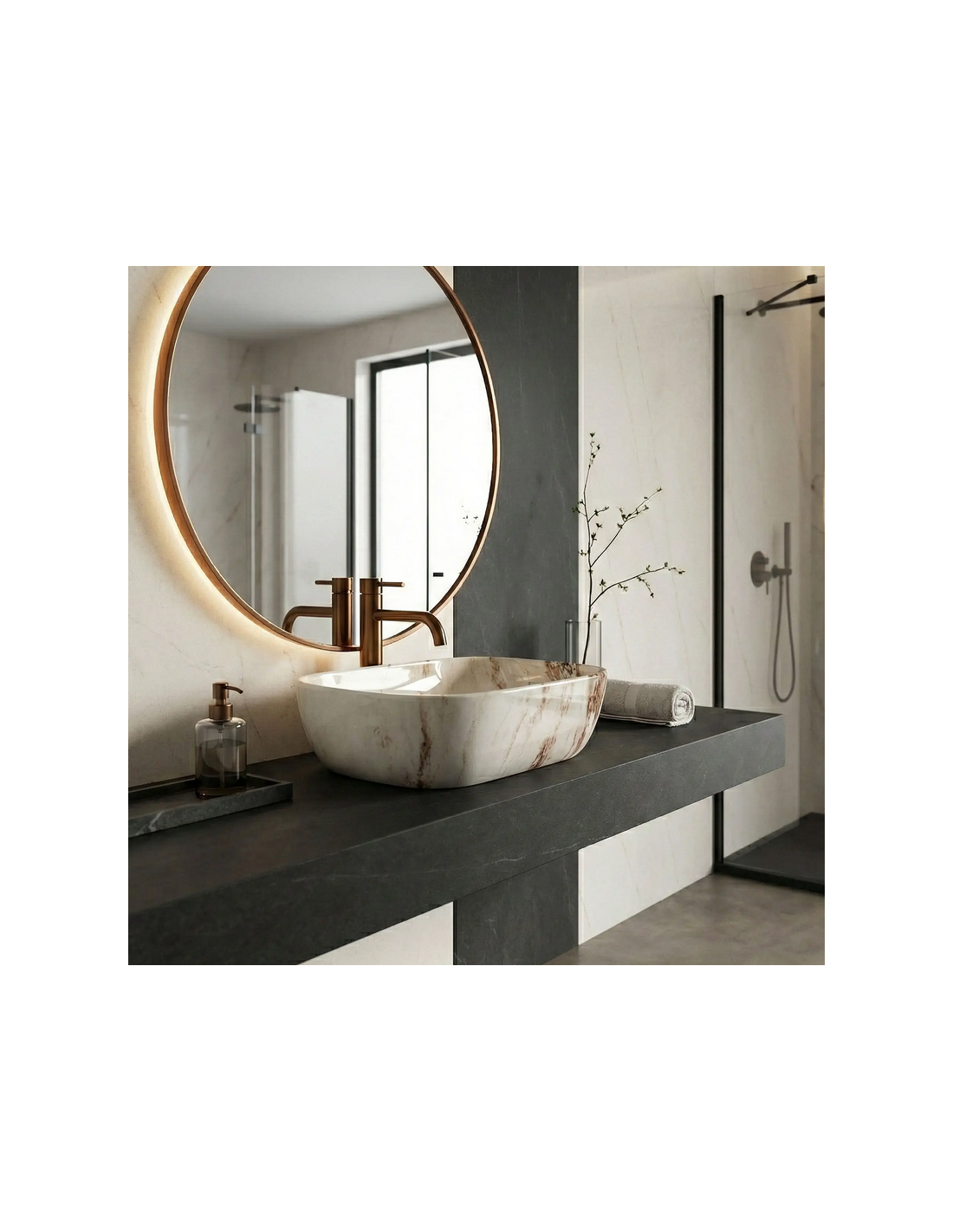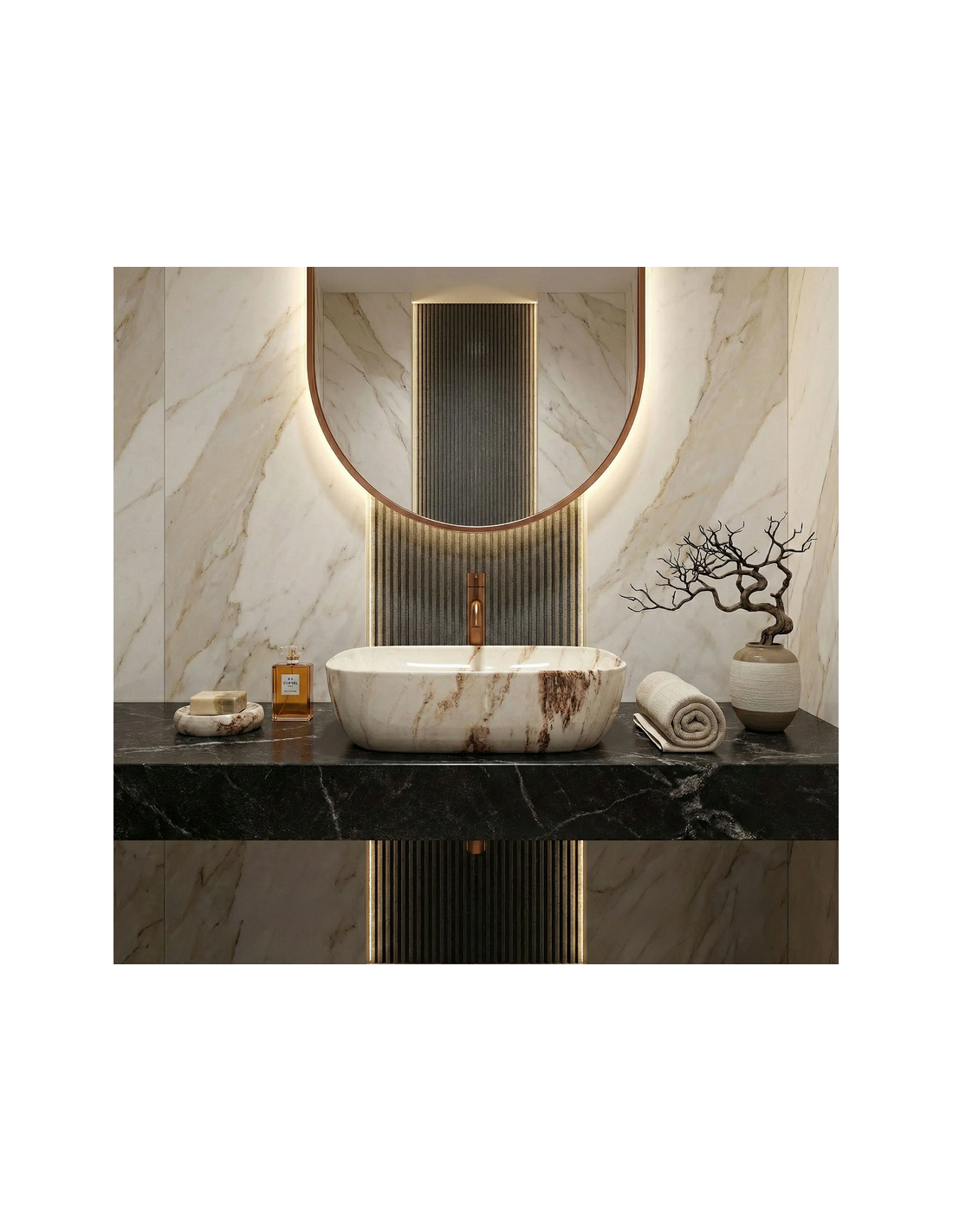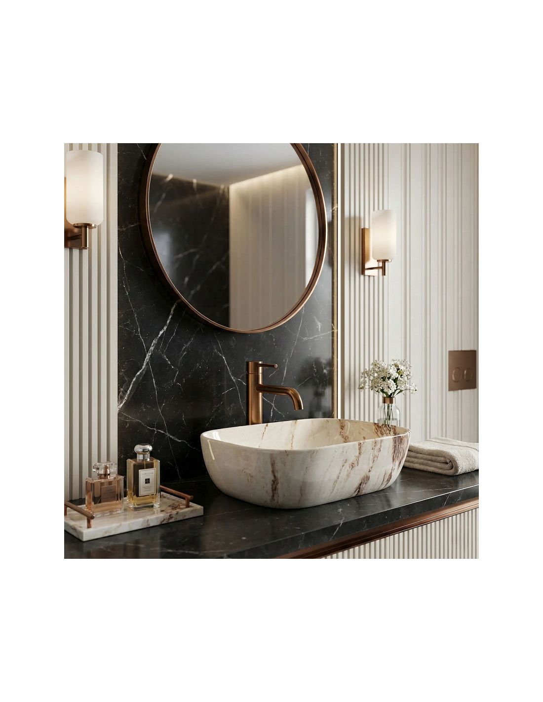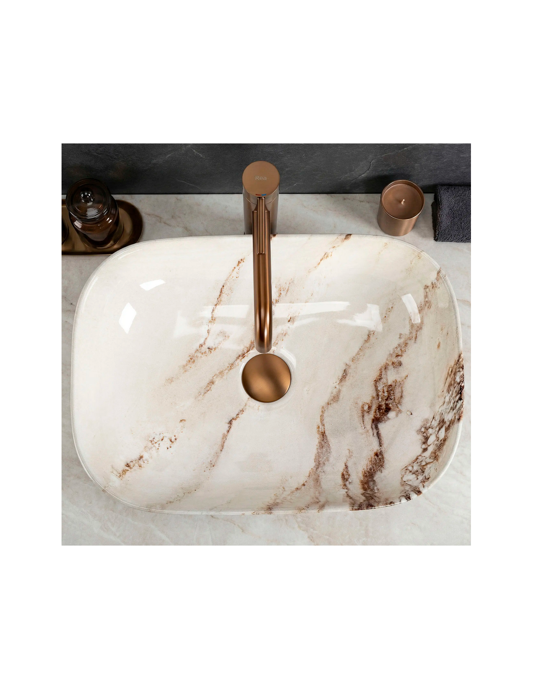 Bordmonteret rektangulær håndvask i keramik 46,5 x 33 cm - Cremebrun marmor