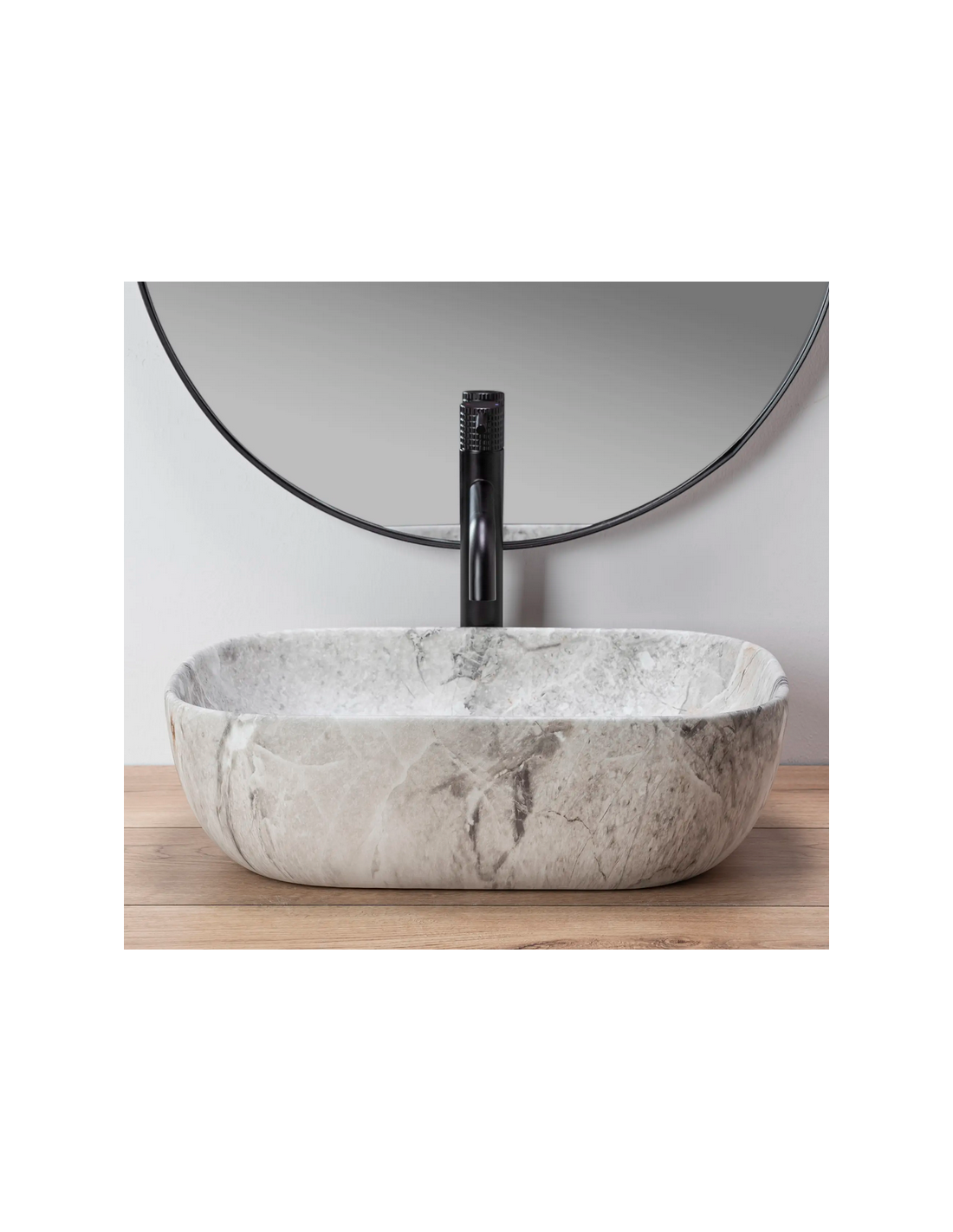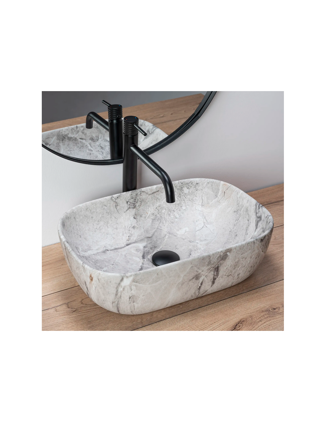 Bordmonteret håndvask i keramik 46,5 x 33,5 cm - Stengrå marmor