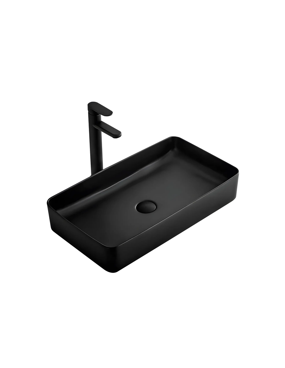 Bordmonteret håndvask udført i et moderne design af mat sort sanitær keramik. Håndvasken måler 61 x 35 cm i bredde og dybde. Håndvasken leveres uden bundventil og andet vist tilbehør.