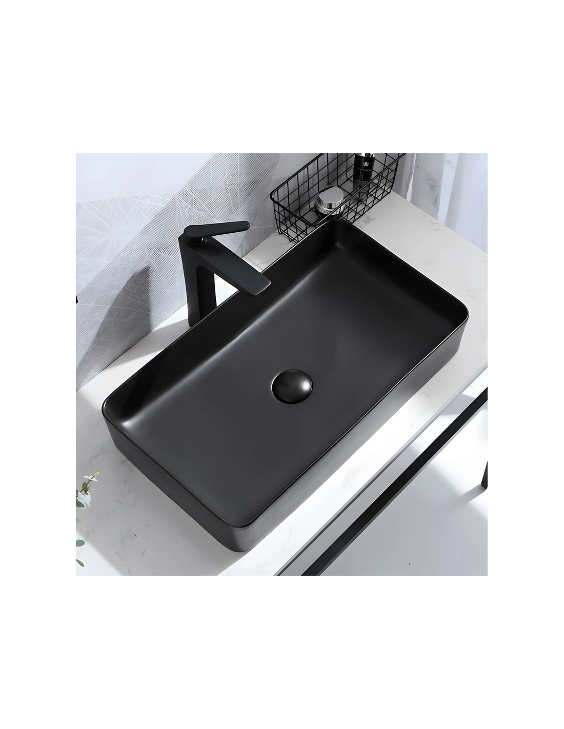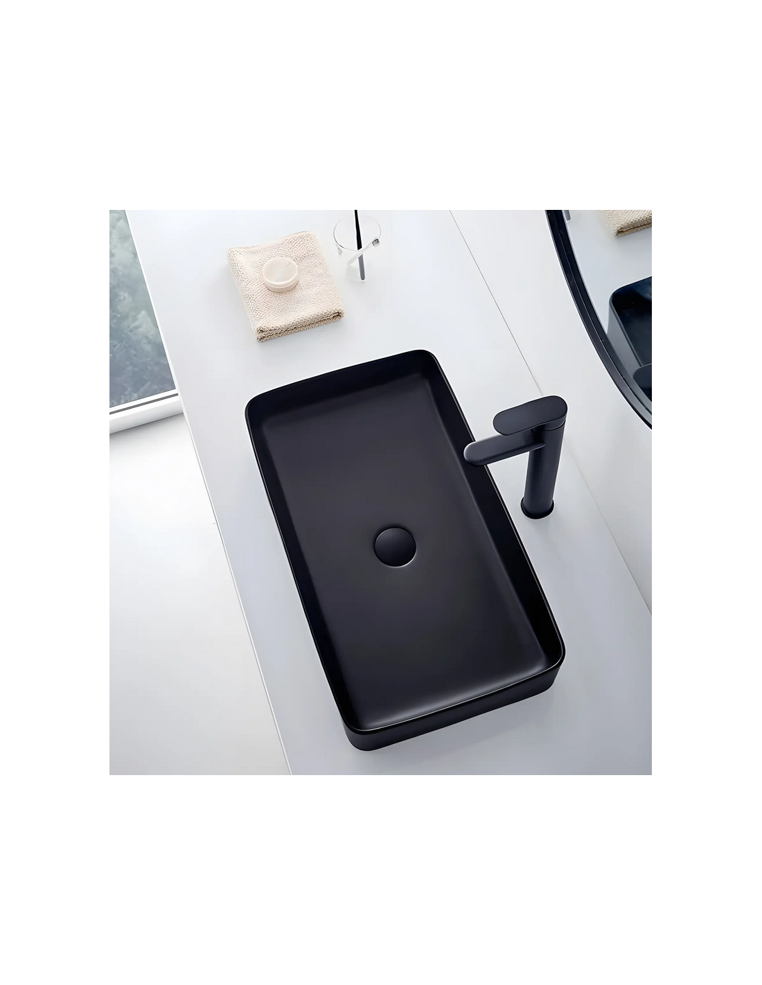 Bordmonteret håndvask i keramik 61 x 35 cm - Mat sort