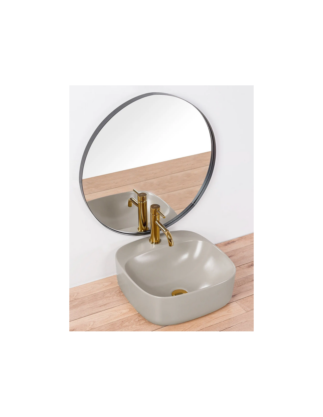 Bordmonteret håndvask i keramik 42 x 42 cm - Mat lysegrå