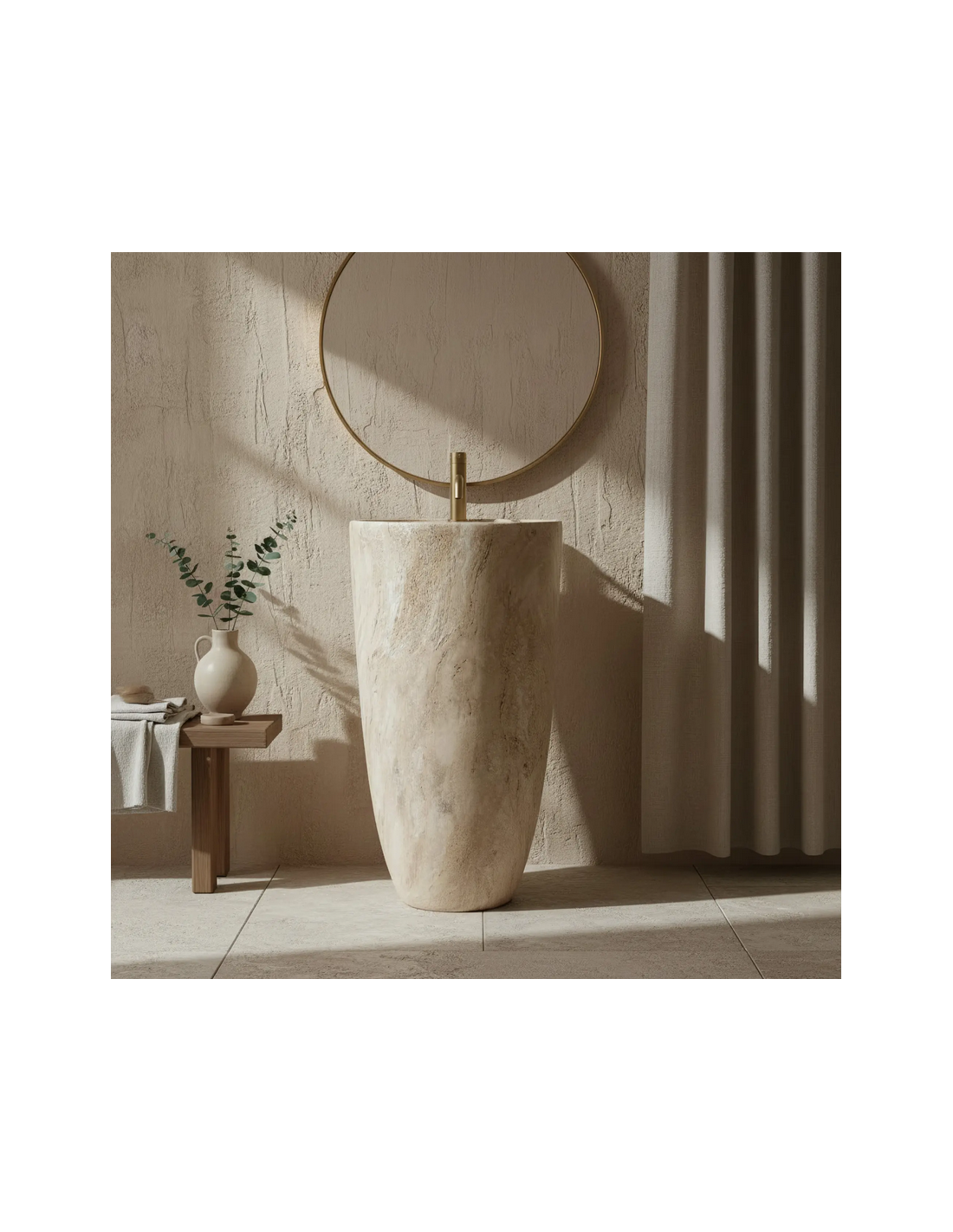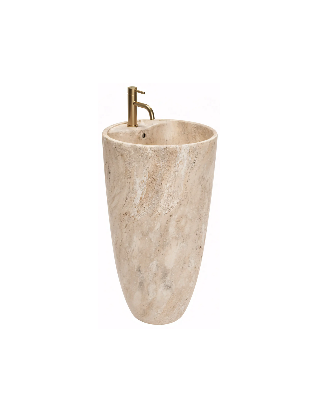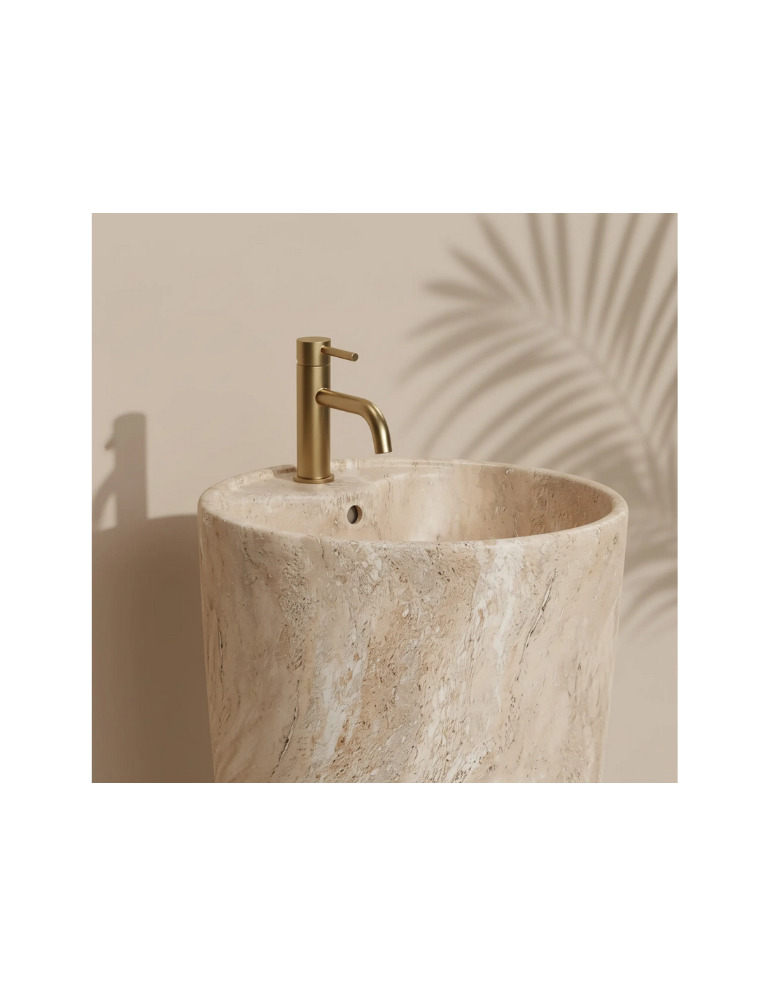 Gulvmonteret rund håndvask i keramik H83,5 x Ø45 cm - Mat travertin