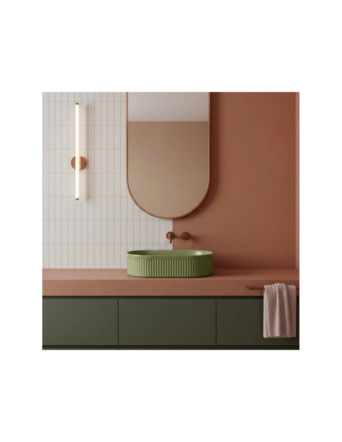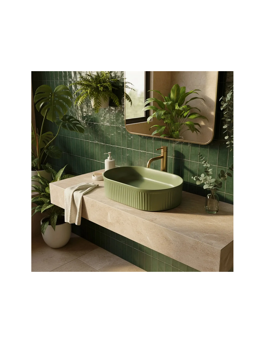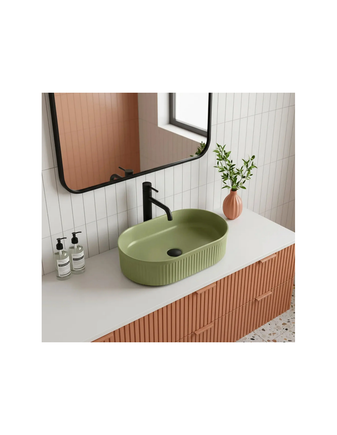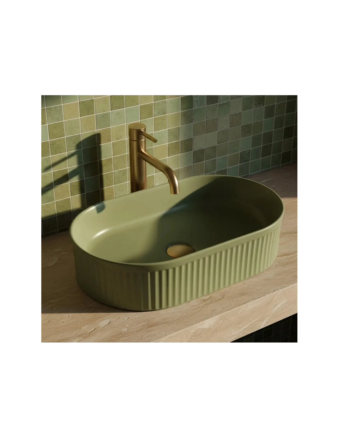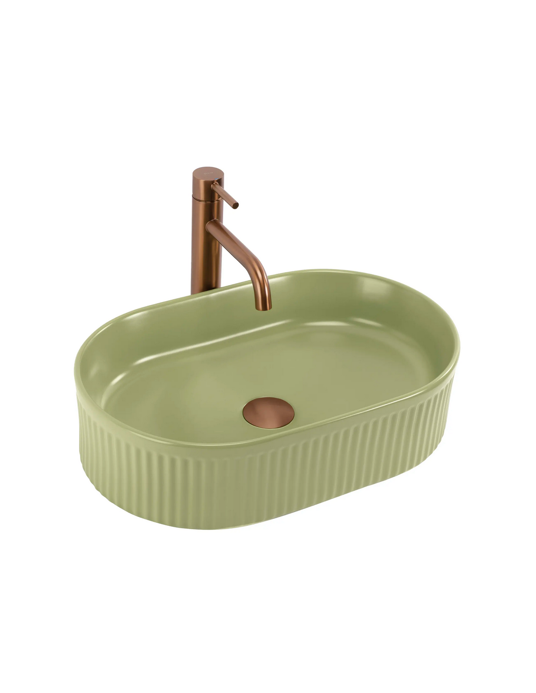 Bordmonteret oval håndvask i keramik 49 x 31 cm - Mat pistaciegrøn