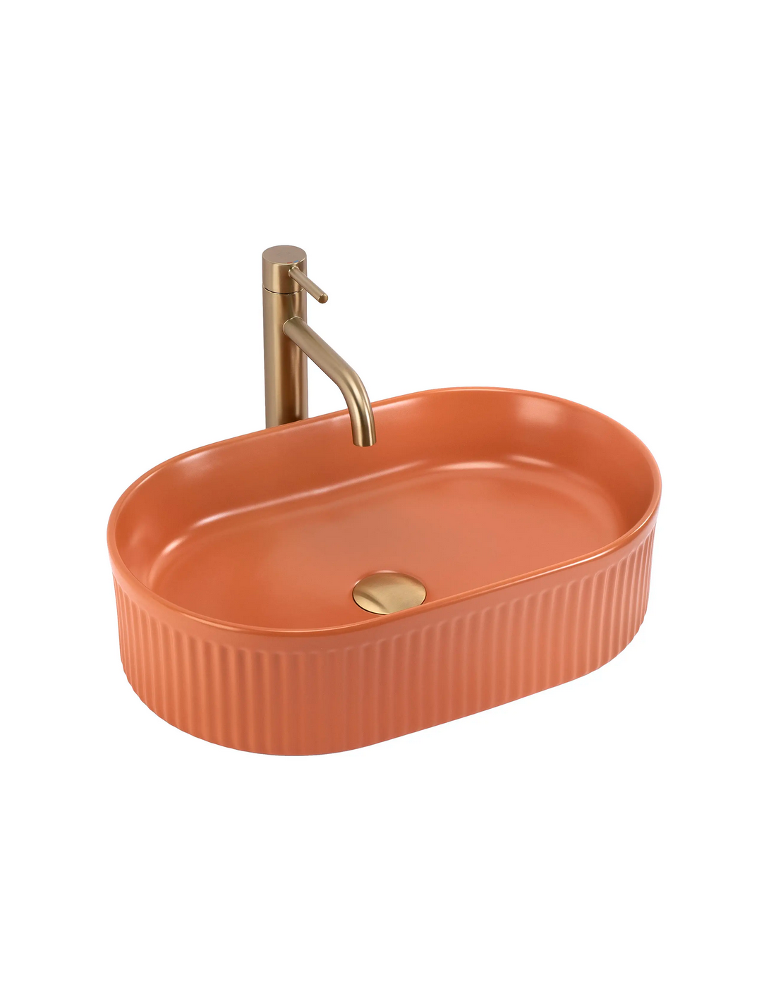 Bordmonteret oval håndvask i keramik 49 x 31 cm - Mat kanel