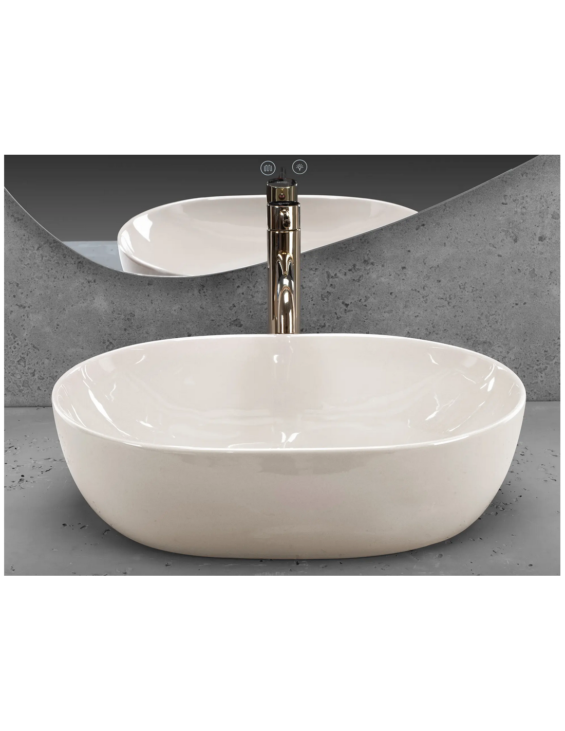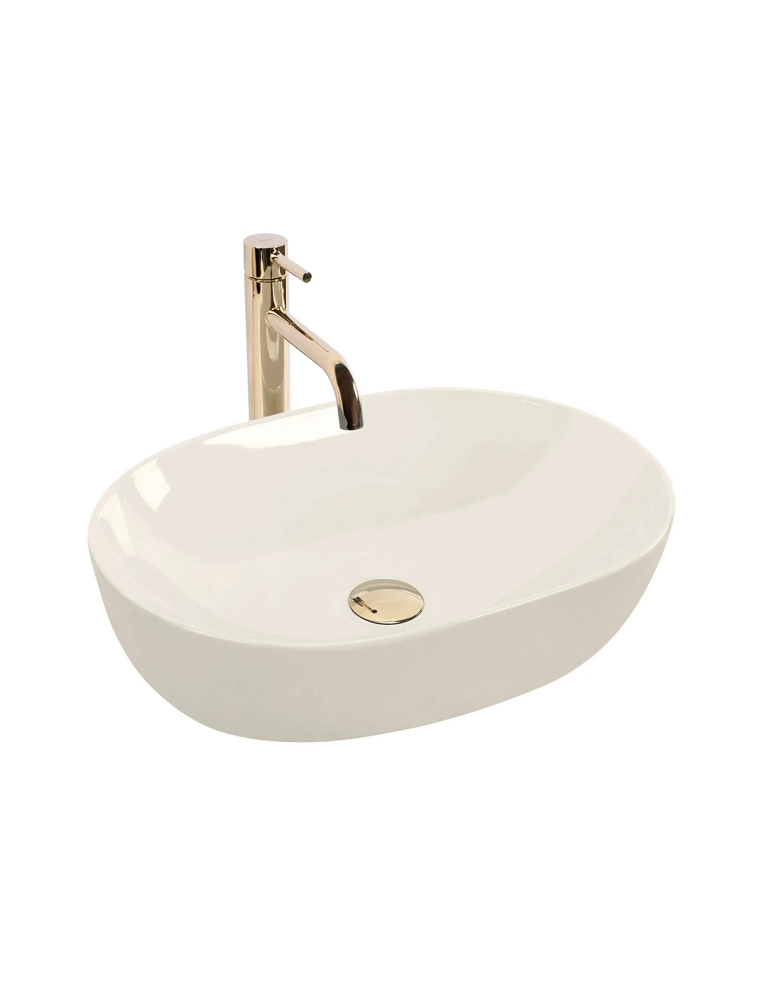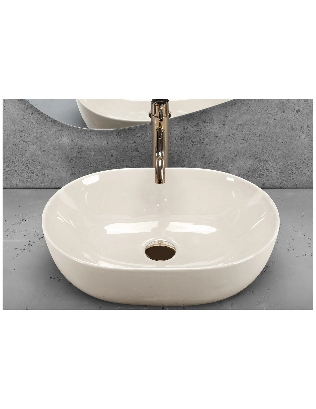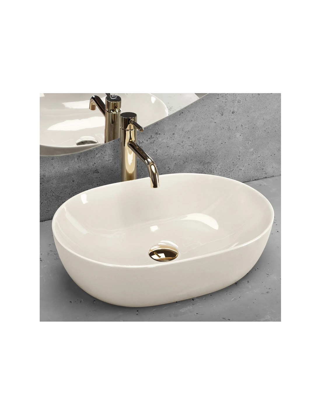 Bordmonteret oval håndvask i keramik 49 x 35 cm - Blank ecru