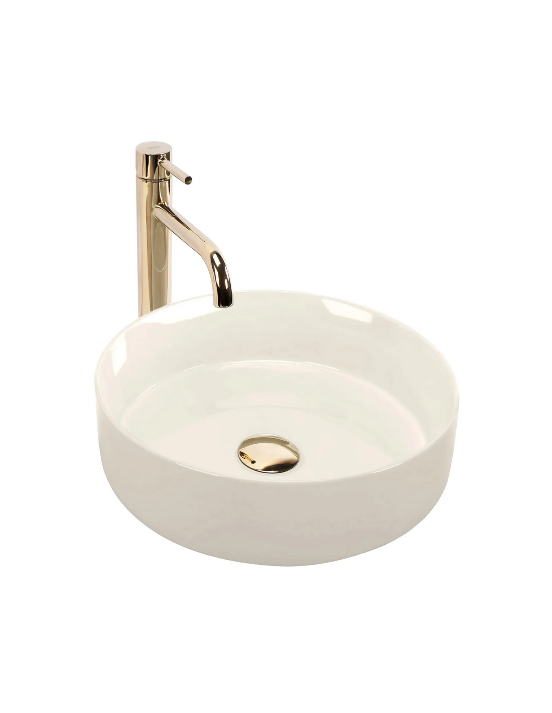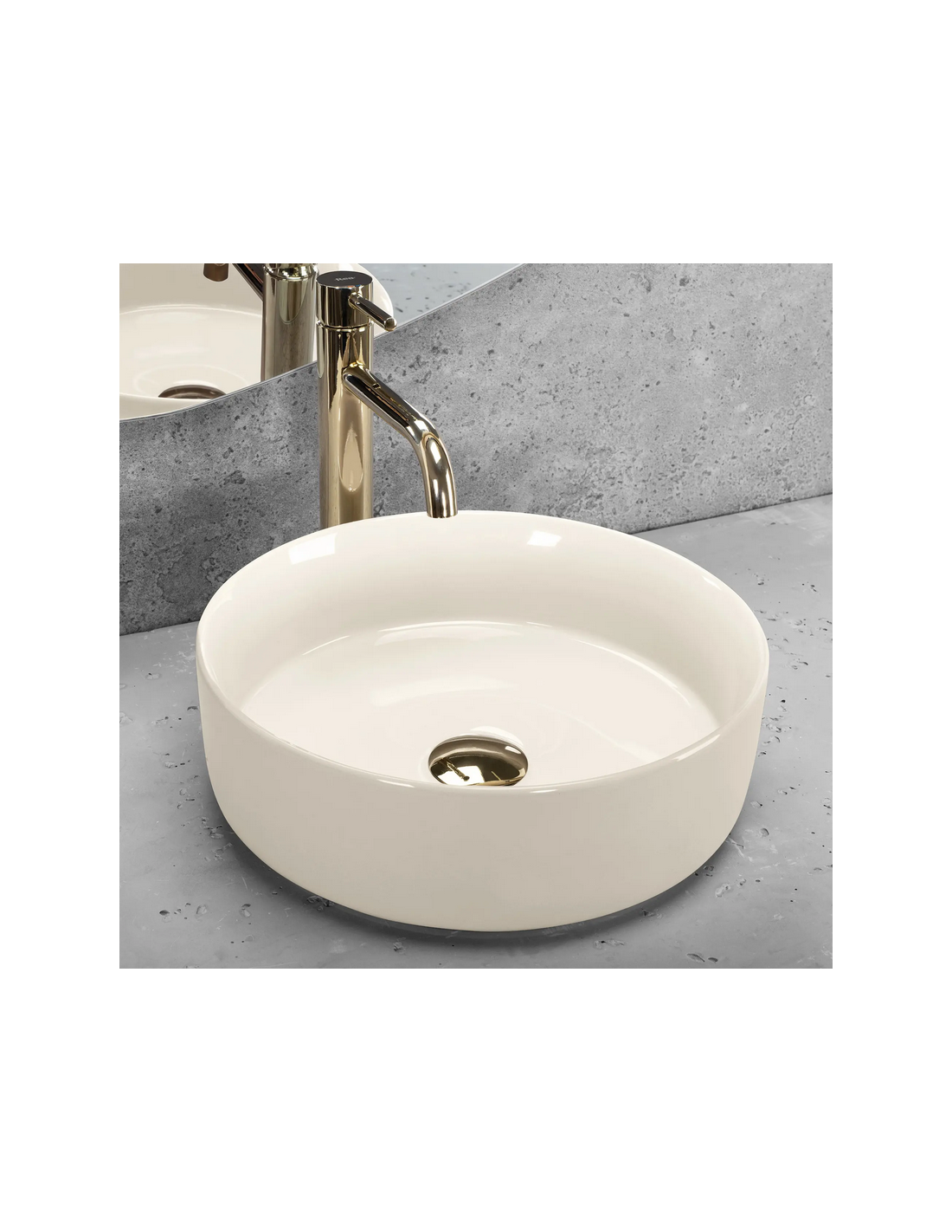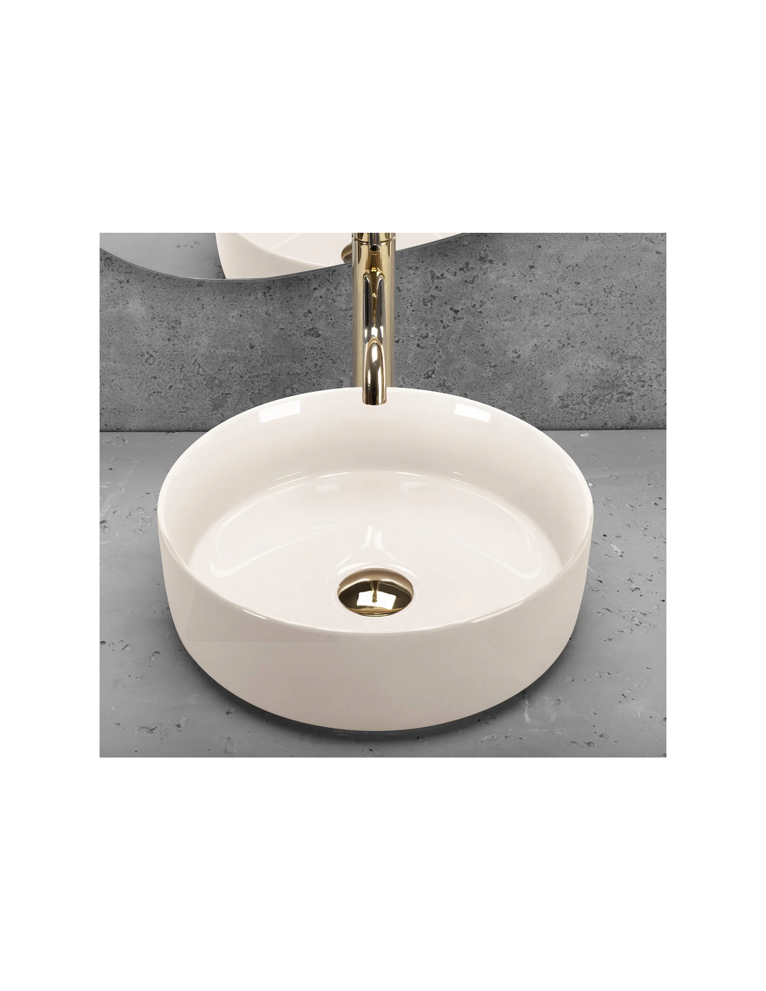 Bordmonteret rund håndvask i keramik Ø36 cm - Blank ecru