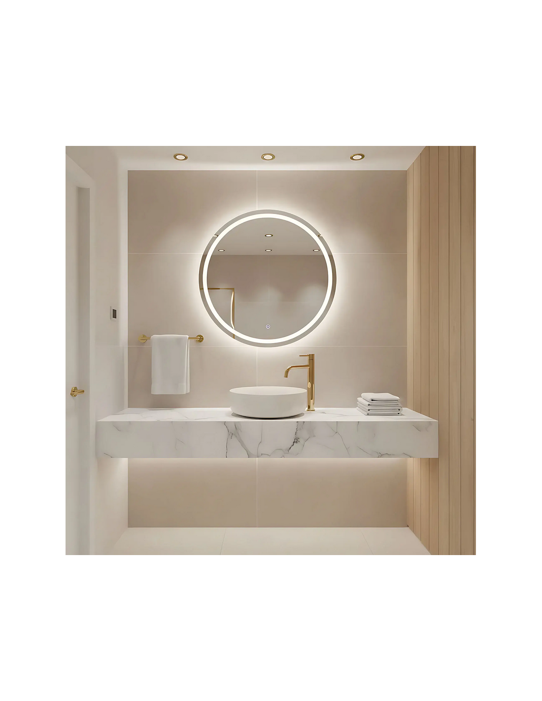Bordmonteret håndvask udført i et moderne design af blank ecru sanitær keramik. Håndvasken måler 36 cm i diameter. Håndvasken leveres uden bundventil og andet vist tilbehør.