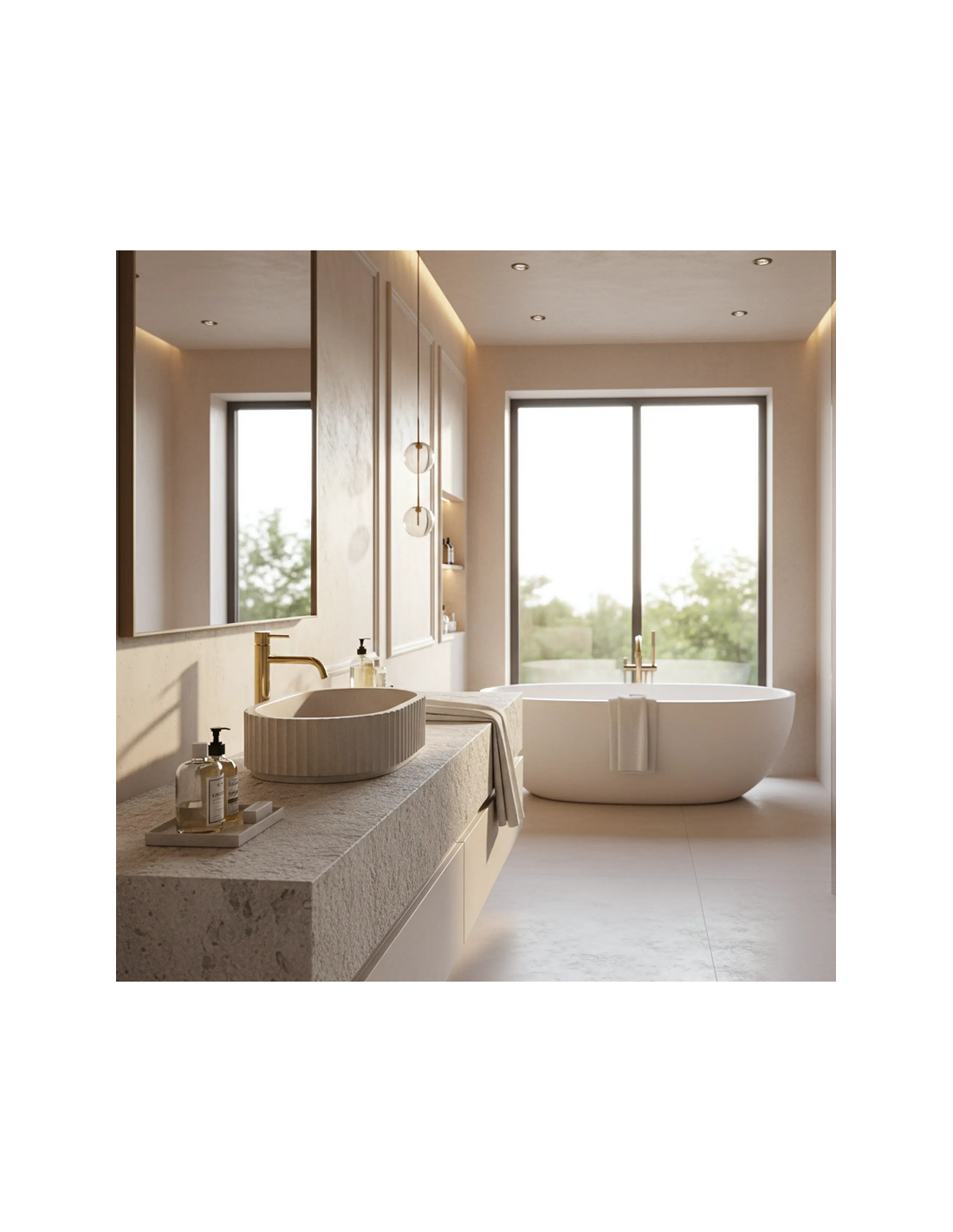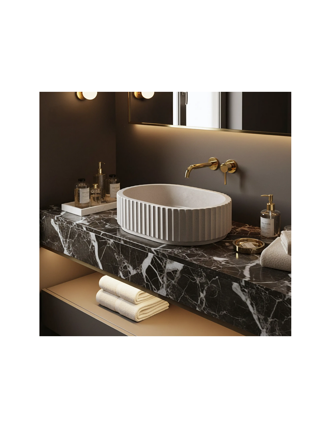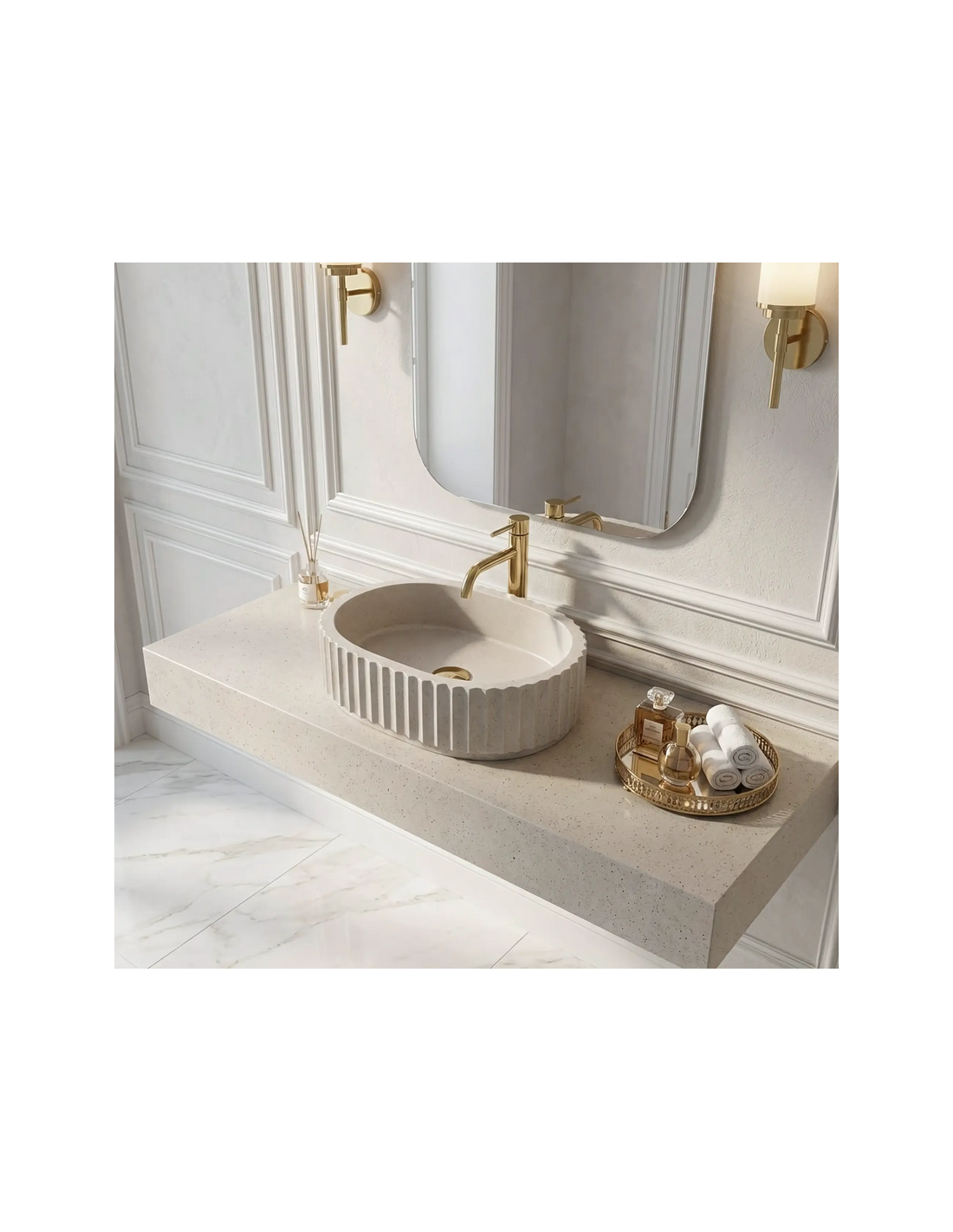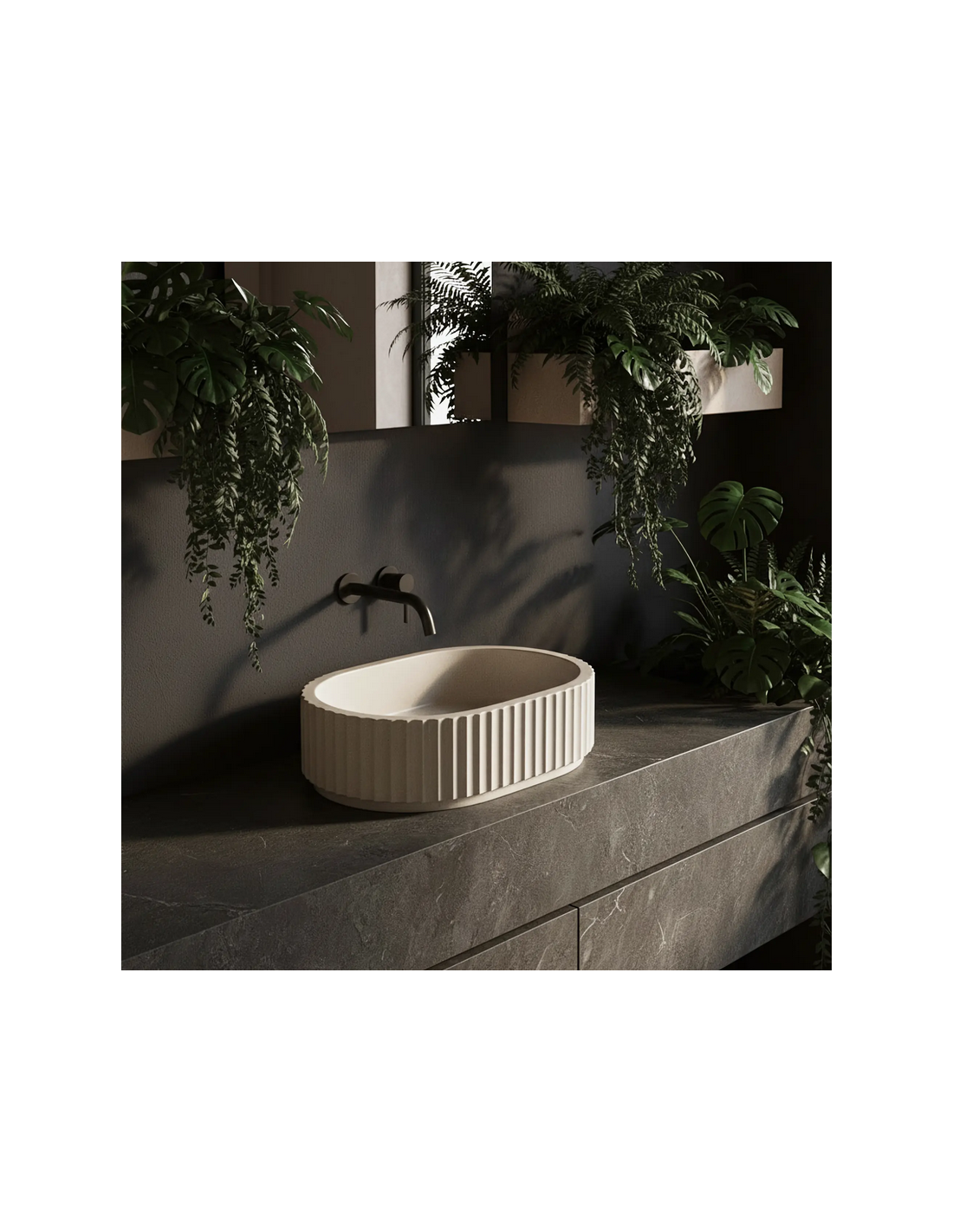 MARGARET Bordmonteret oval håndvask i stenkomposit 48,5 x 35,5 cm - Beige