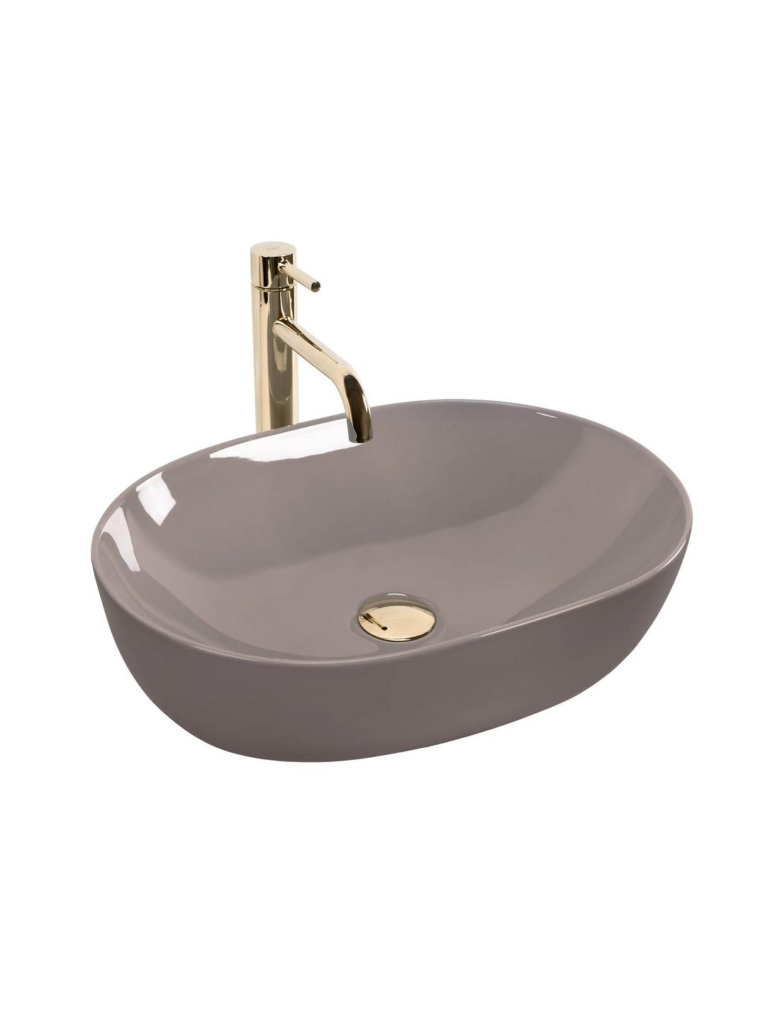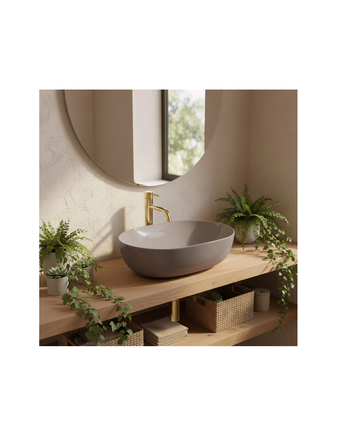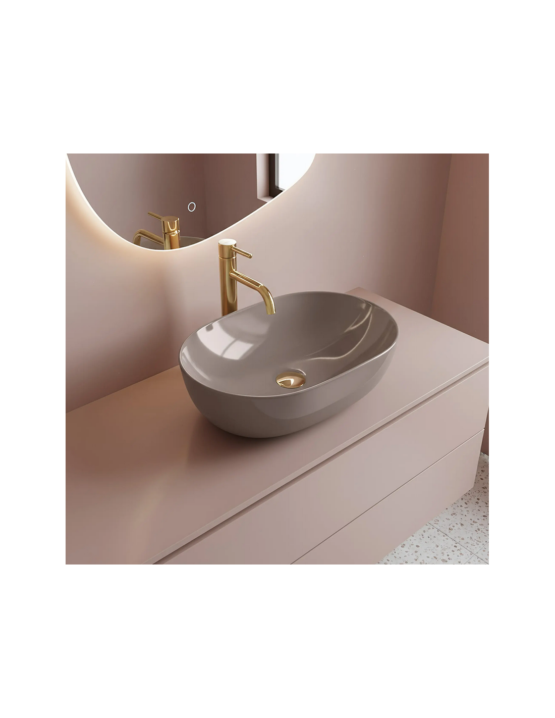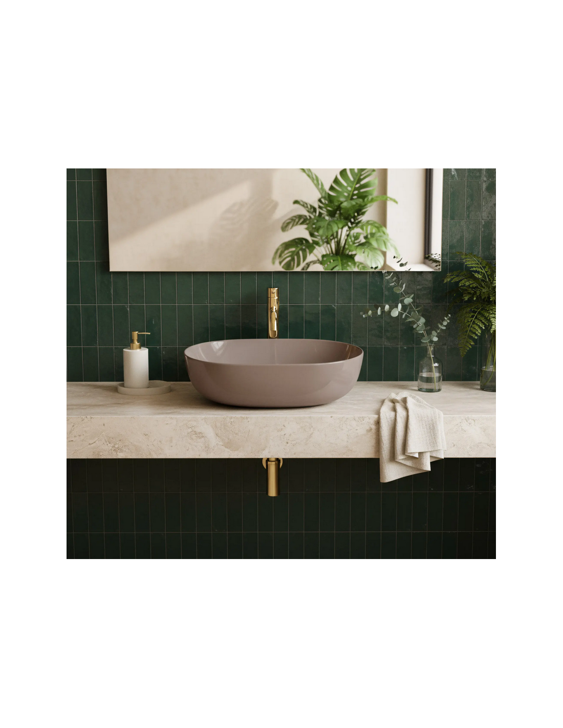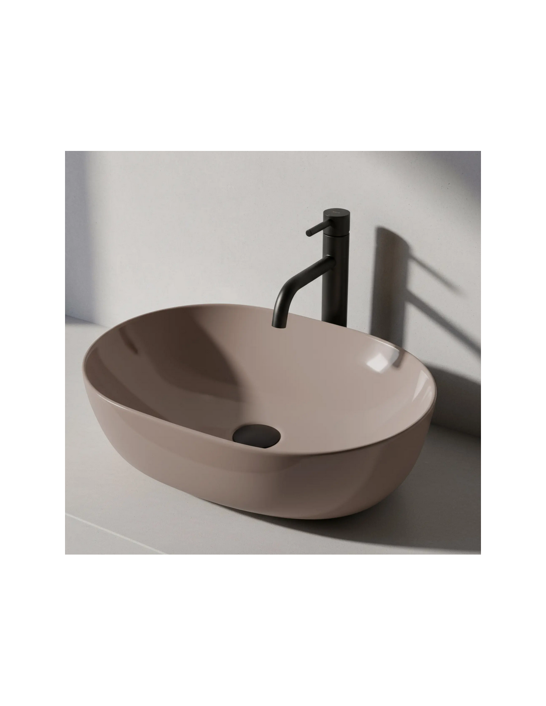 Bordmonteret oval håndvask i keramik 49 x 35 cm - Blank mokka