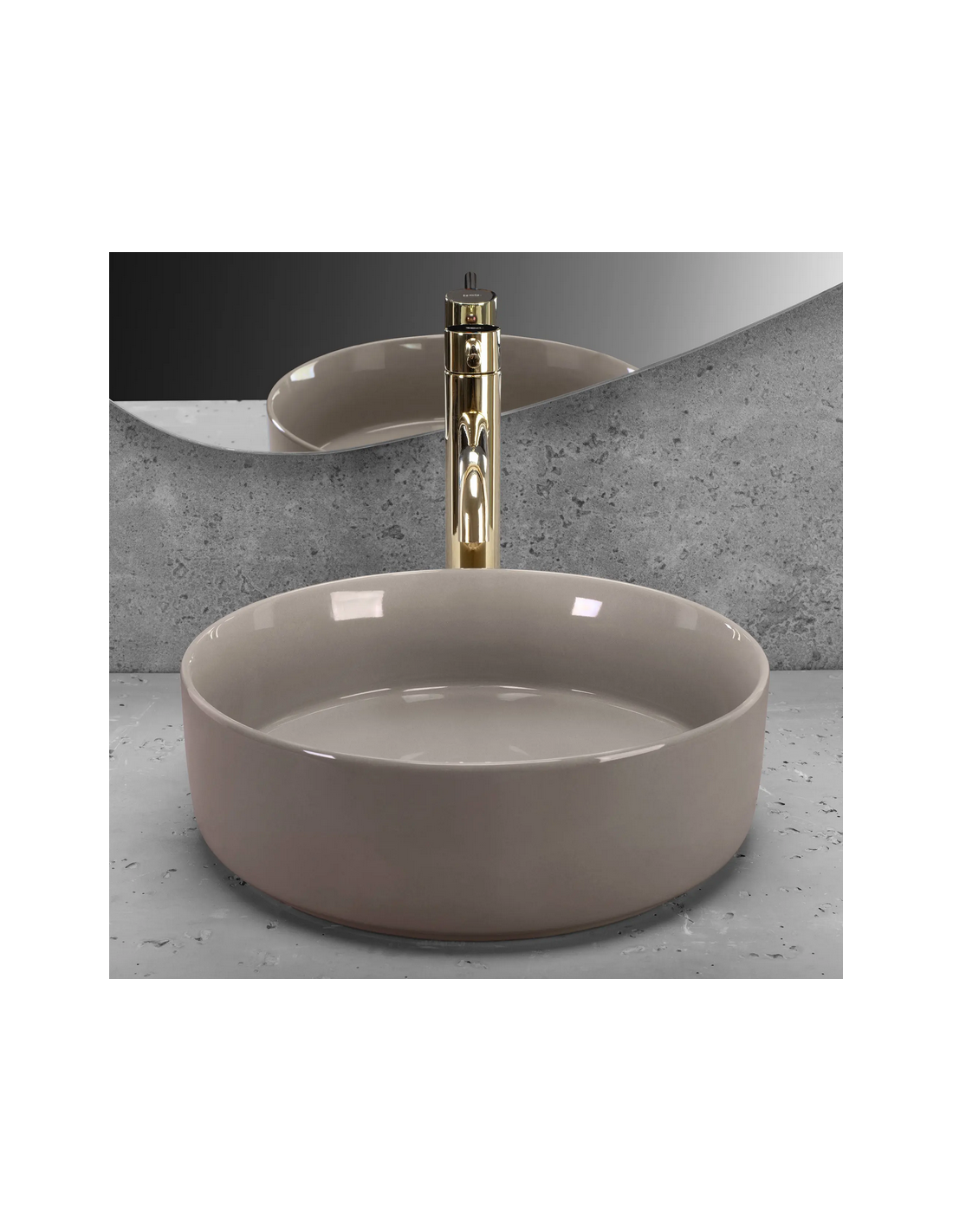 Bordmonteret rund håndvask i keramik Ø36 cm - Blank mokka