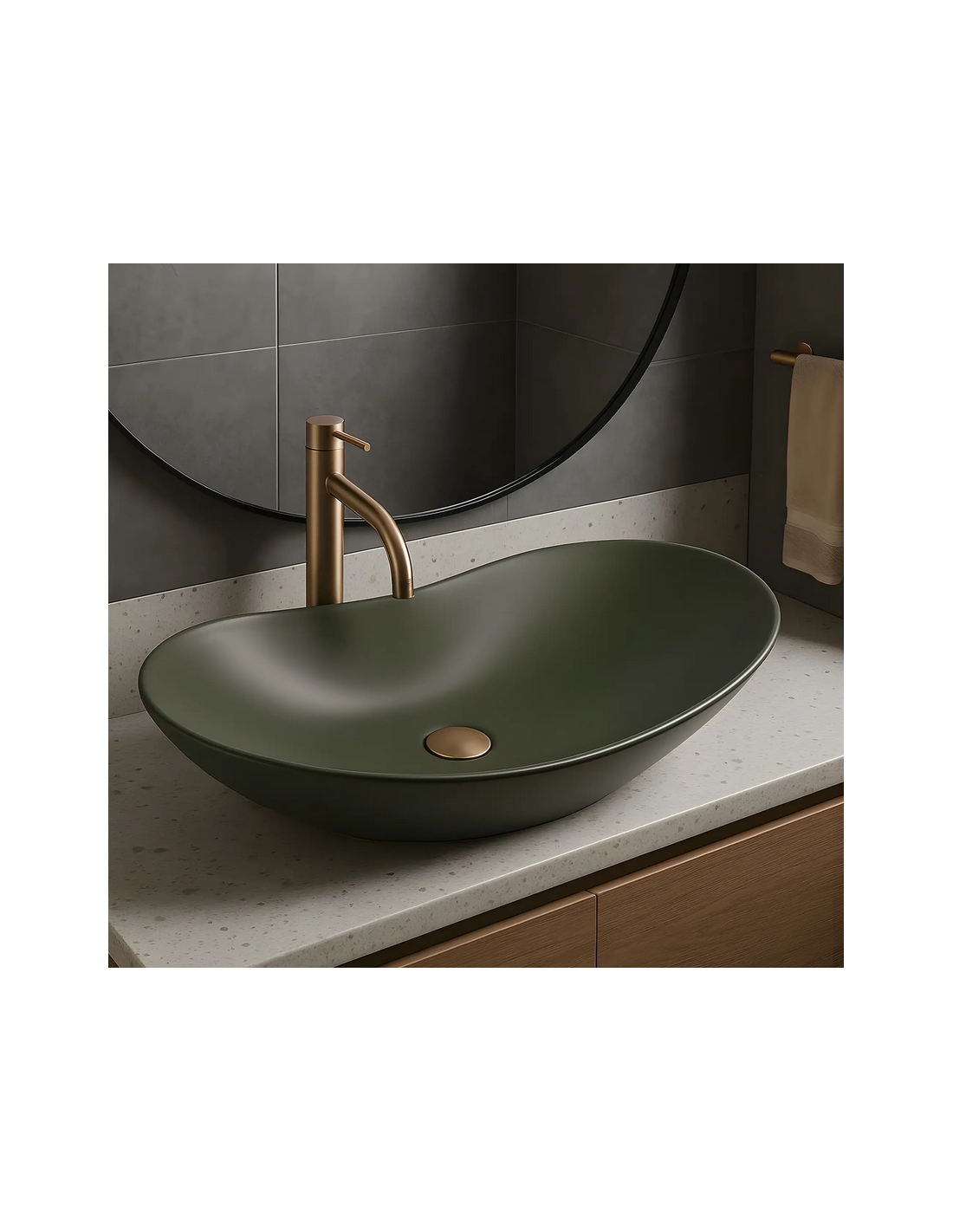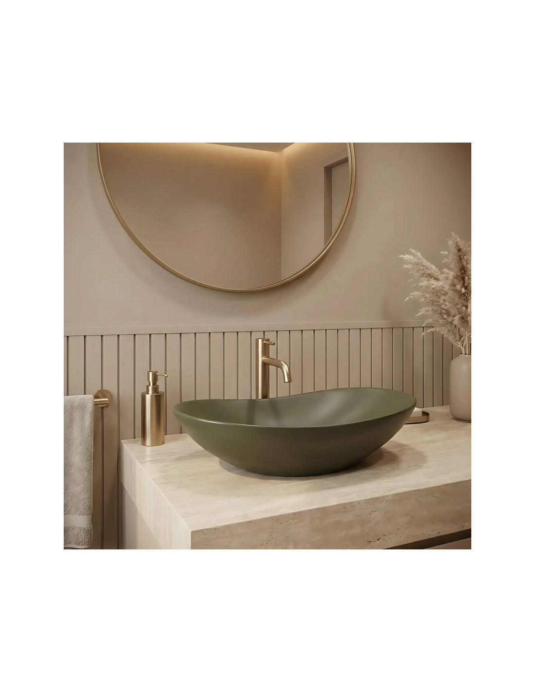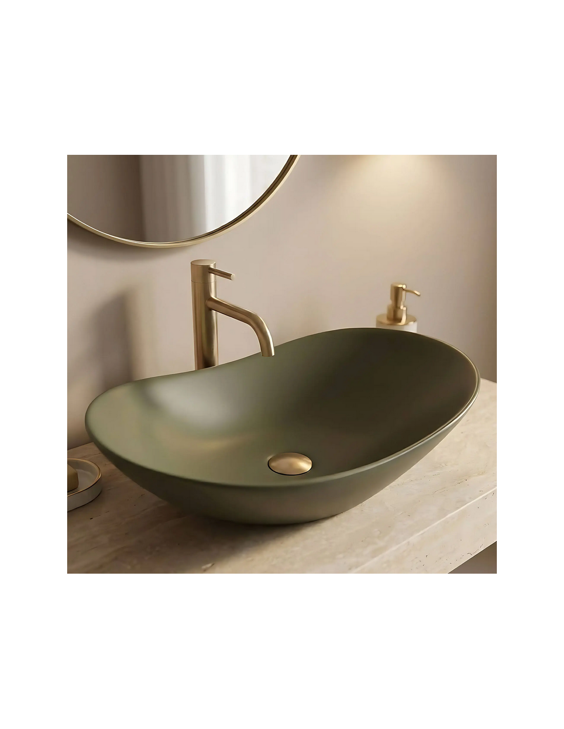 Bordmonteret oval håndvask i keramik 61,5 x 35,5 cm - Mat olivengrøn