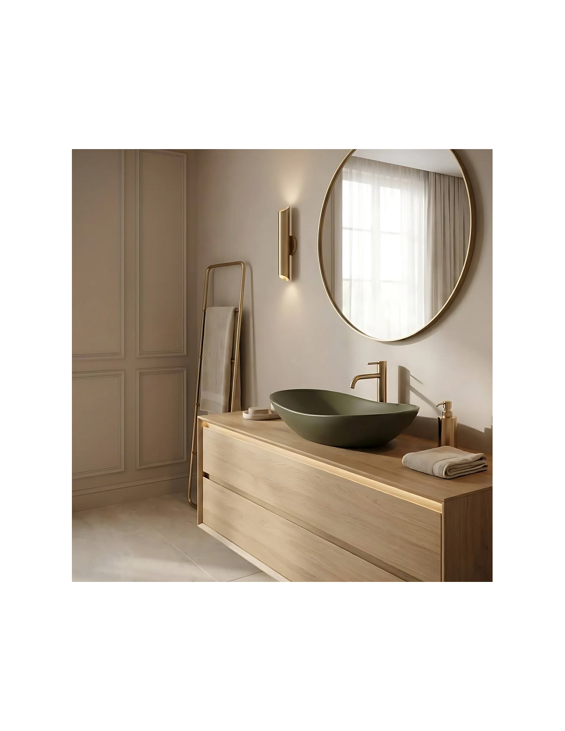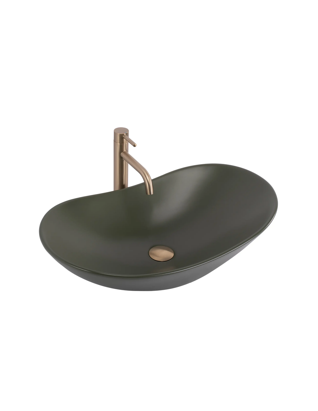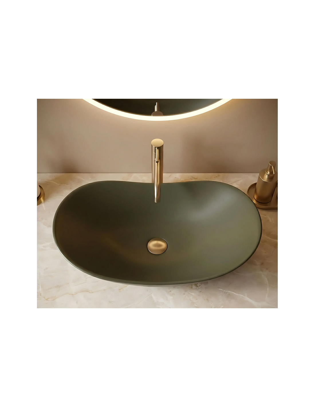 Bordmonteret oval håndvask i keramik 61,5 x 35,5 cm - Mat olivengrøn