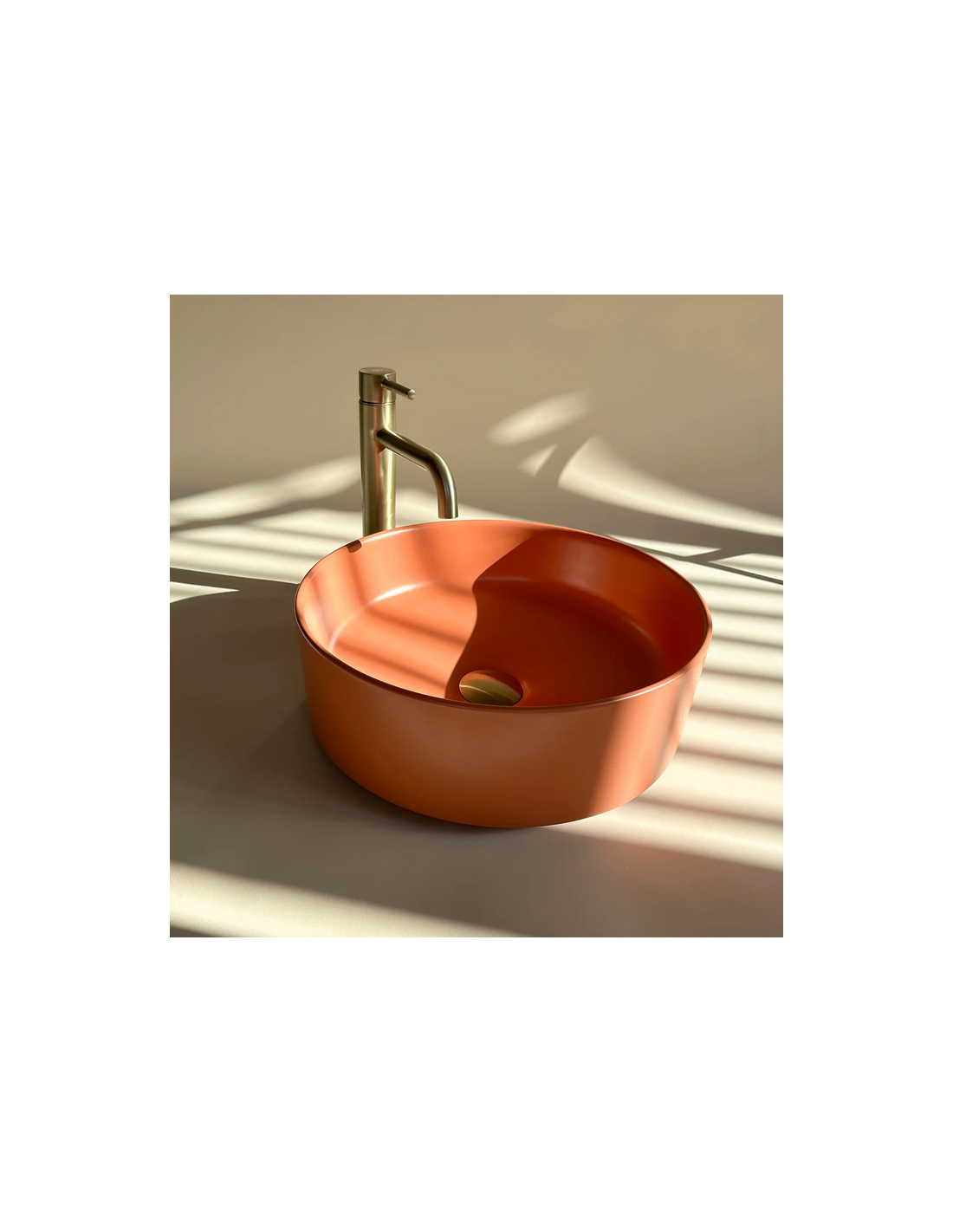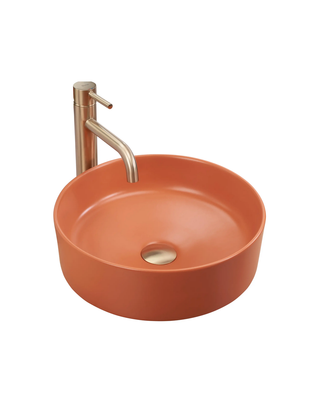 Bordmonteret rund håndvask i keramik Ø37 cm - Mat terracotta