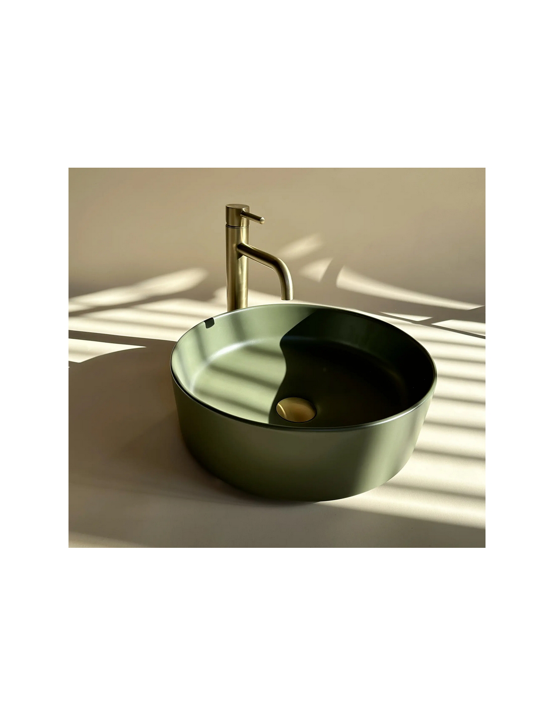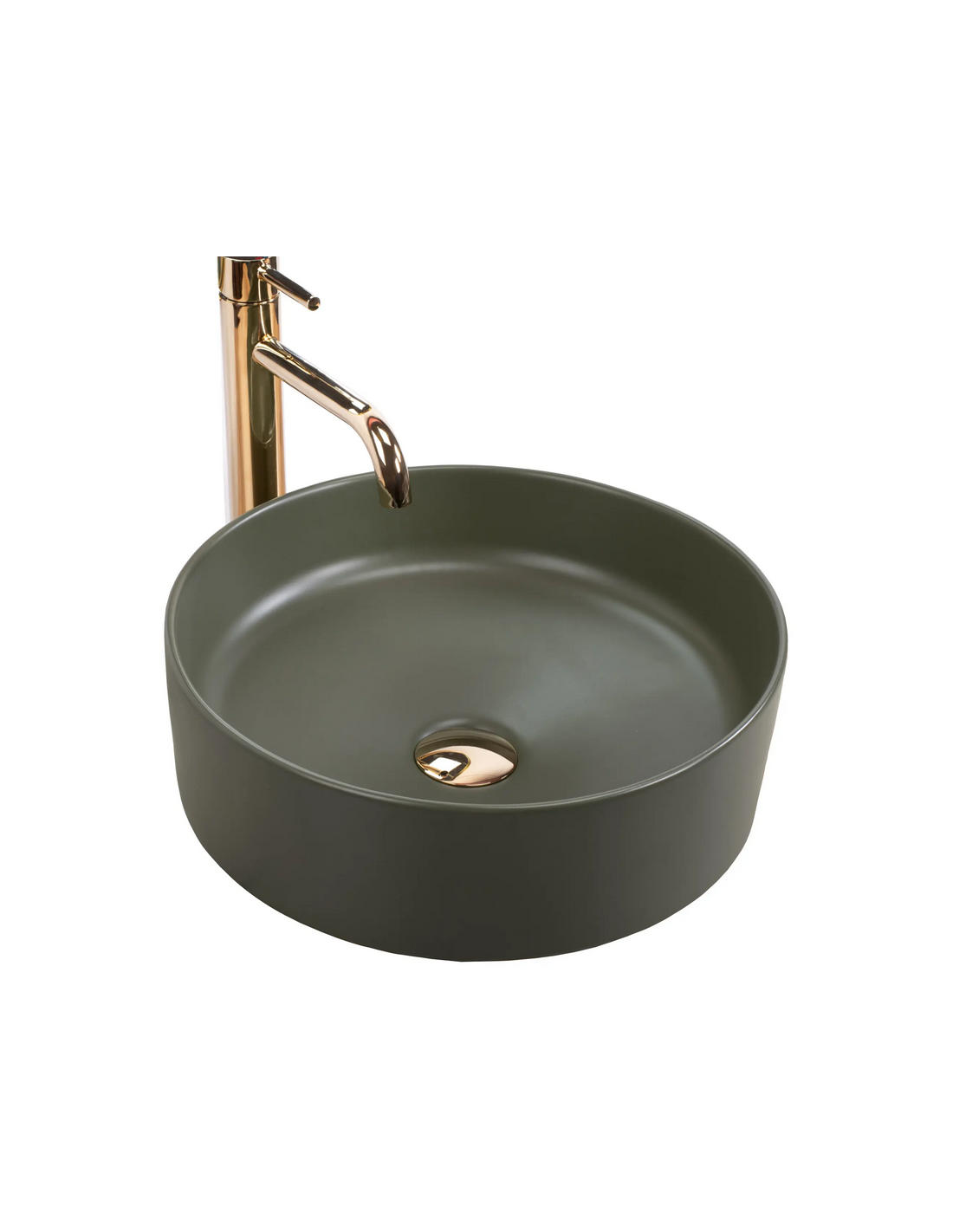 Bordmonteret rund håndvask i keramik Ø37 cm - Mat mørkegrøn