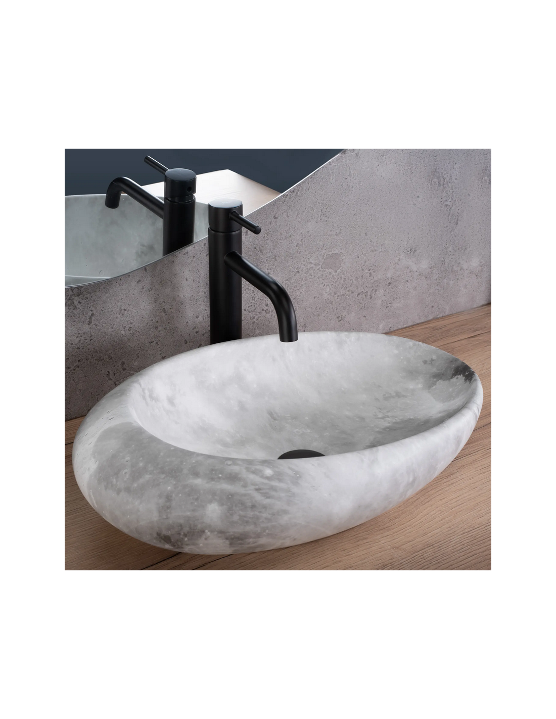 Bordmonteret oval håndvask i keramik 49 x 31 cm - Lysegrå marmor