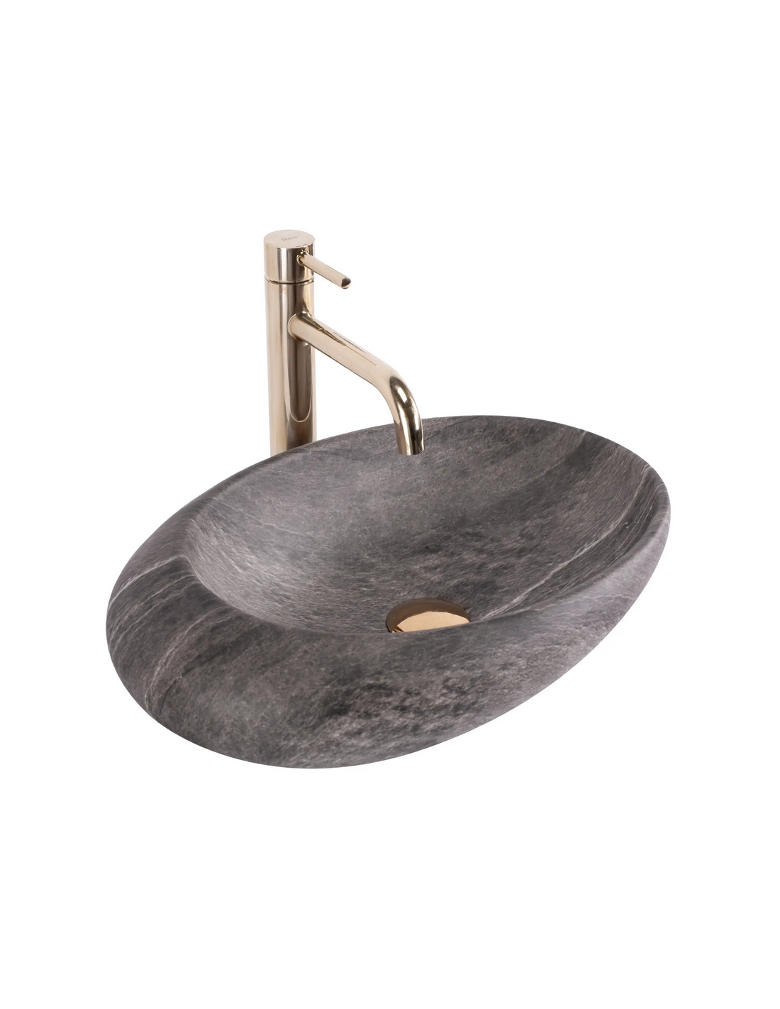 Bordmonteret oval håndvask i keramik 49 x 31 cm - Mørkegrå marmor