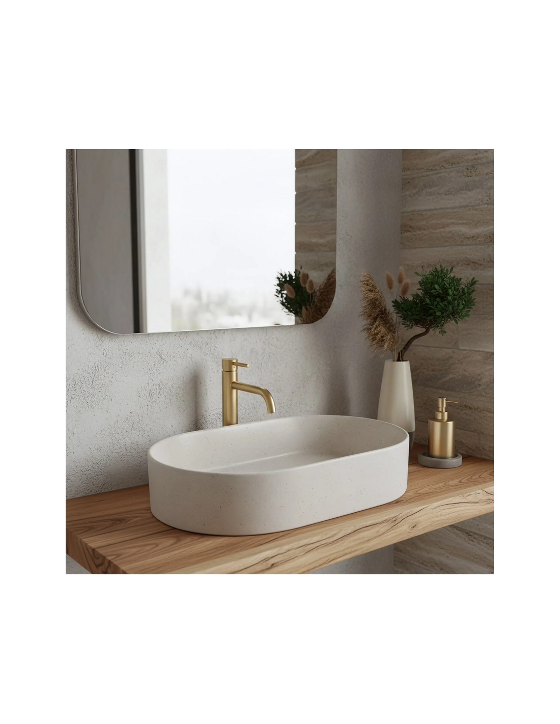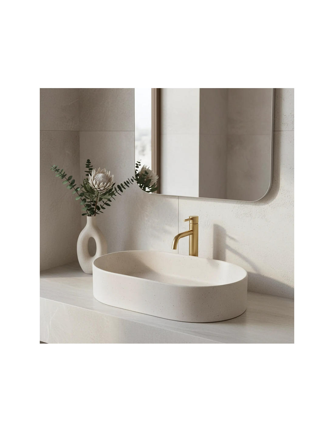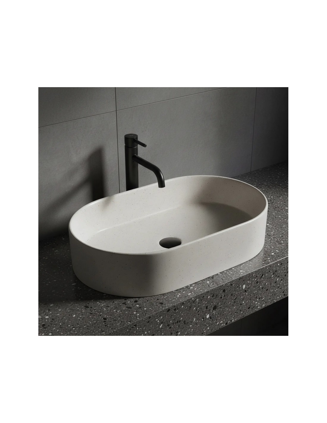 Bordmonteret oval håndvask i keramik 61 x 38,5 cm - Mat sand