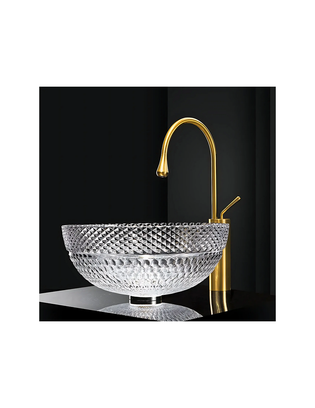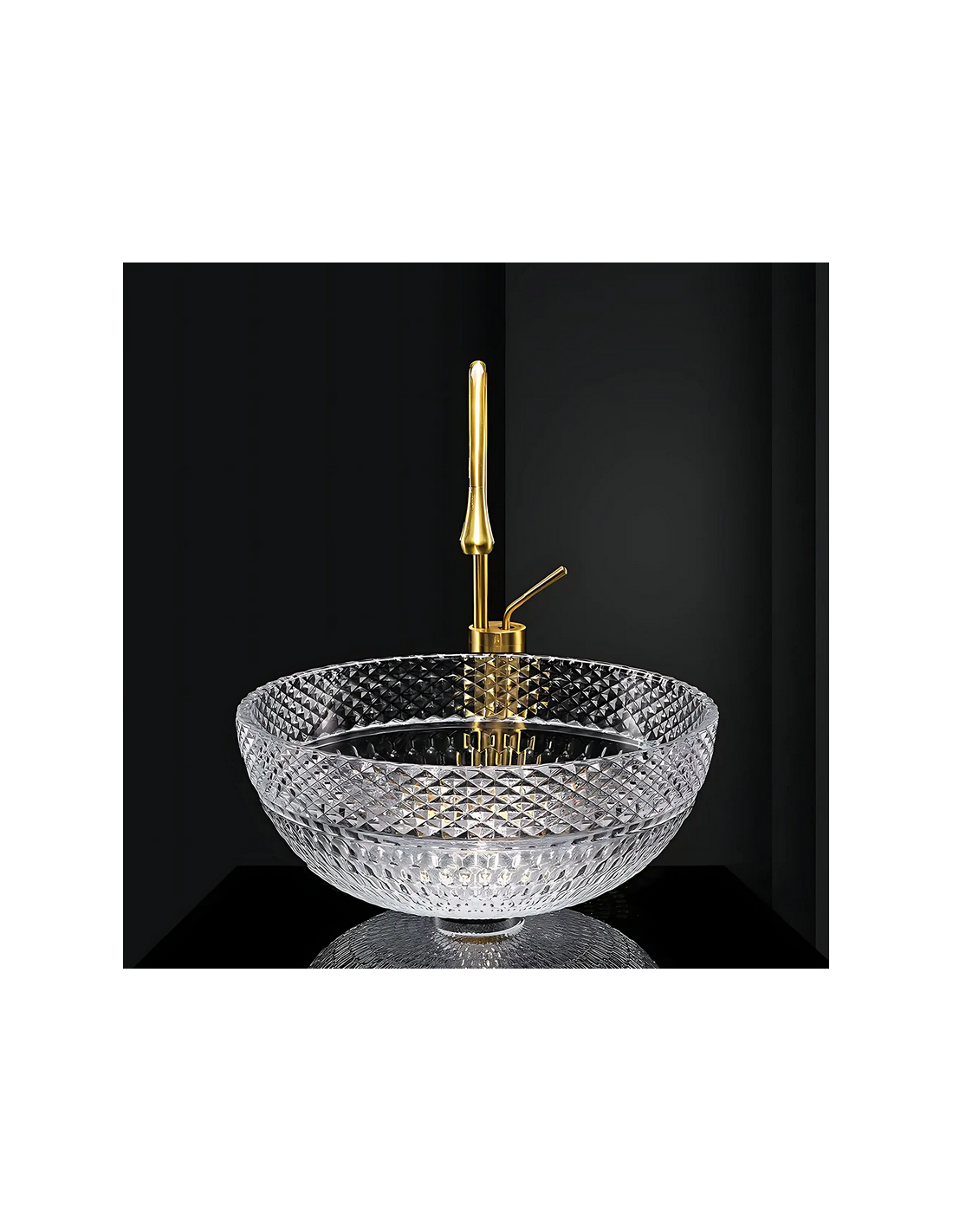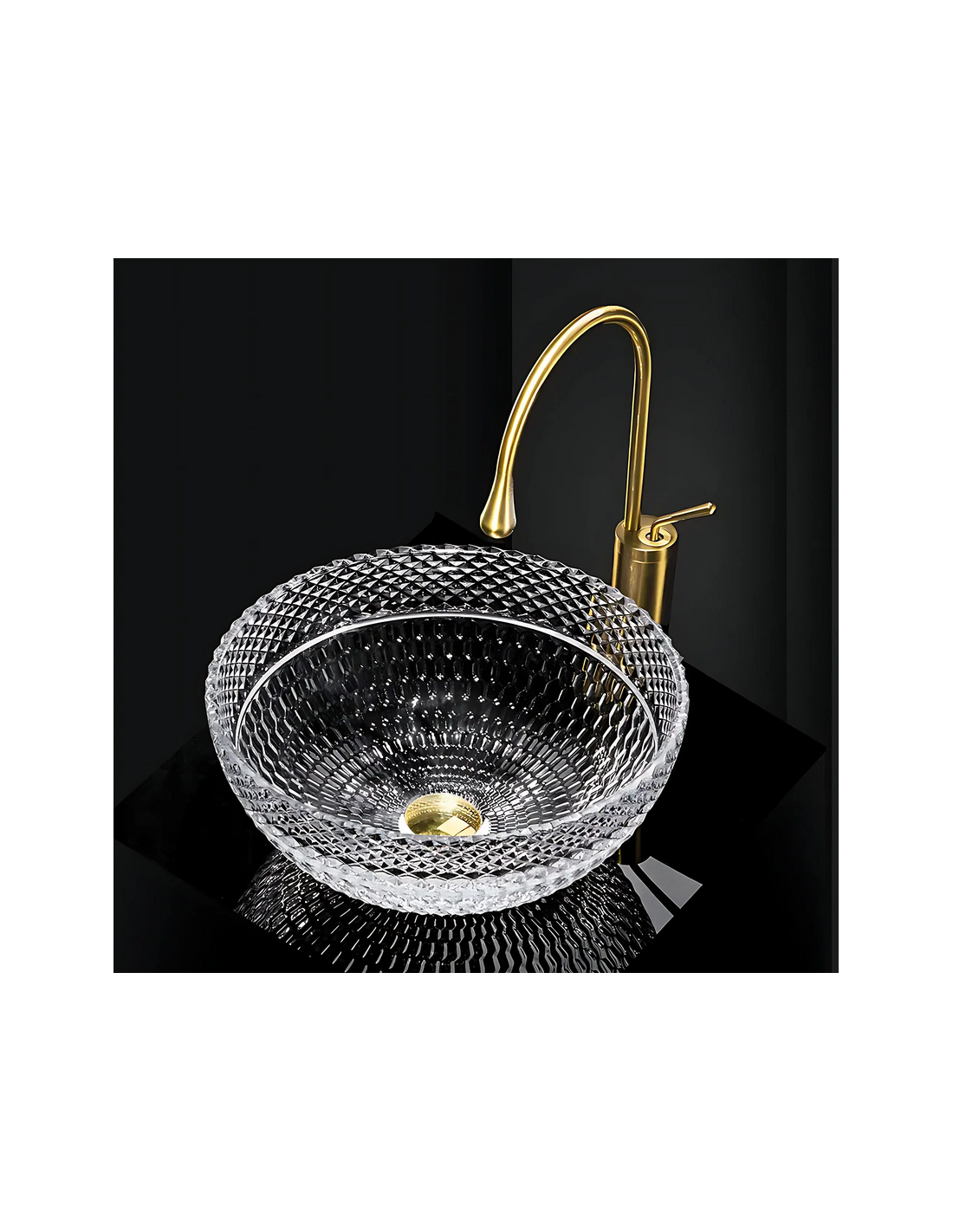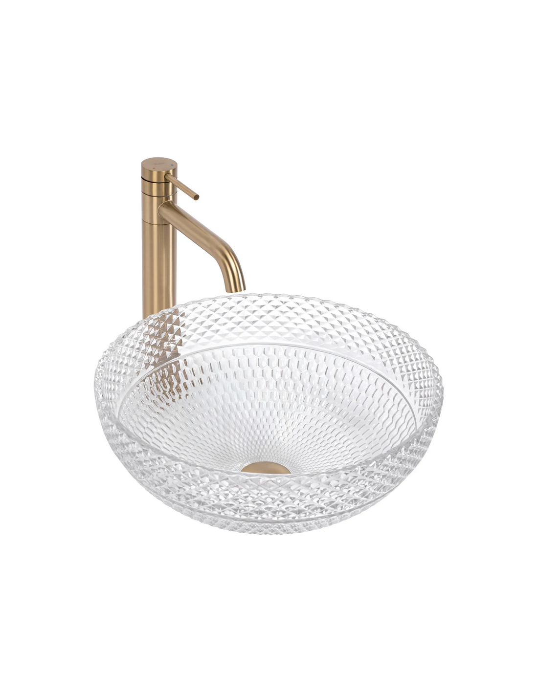 Bordmonteret rund håndvask udført i et moderne design af klar glas. Håndvasken måler 40 cm i diameter. Håndvasken leveres uden bundventil og andet vist tilbehør.