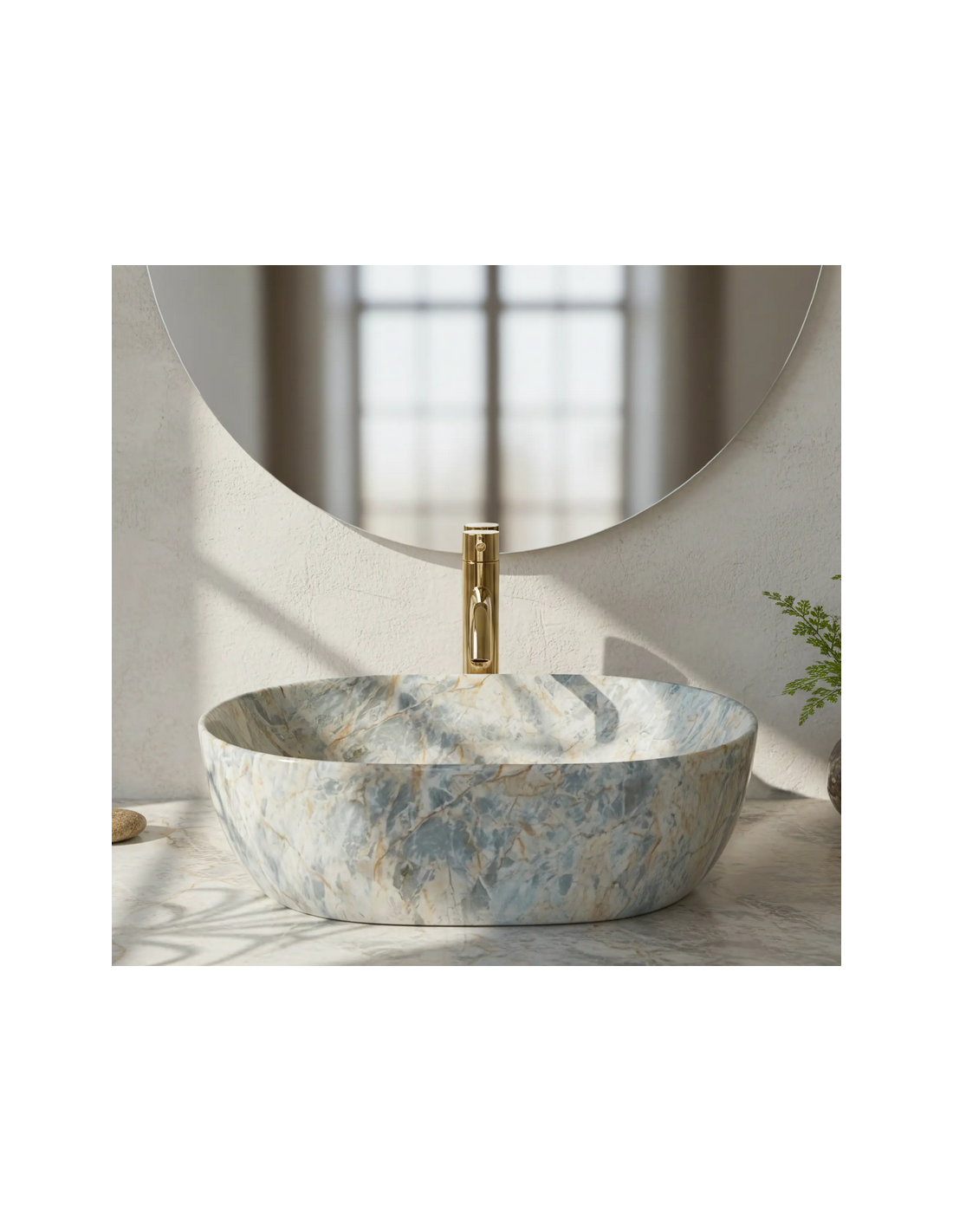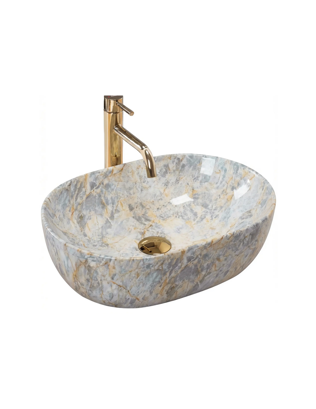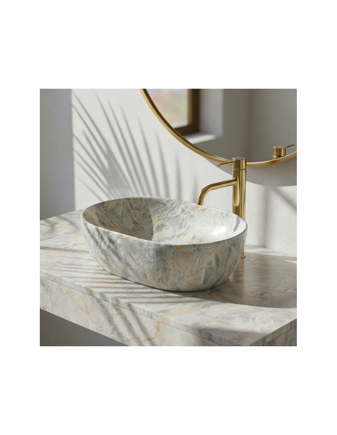 Bordmonteret oval håndvask i keramik 48 x 34,5 cm - Gråbrun marmor