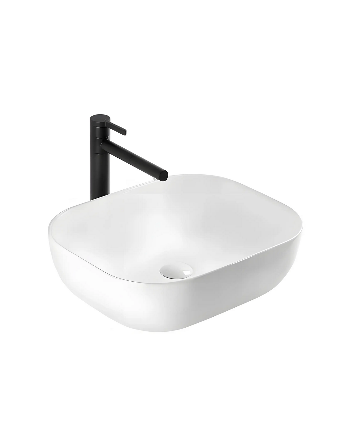 Bordmonteret håndvask udført i et moderne design af blank hvid sanitær keramik. Håndvasken måler 50,5 x 40 cm i bredde og dybde. Håndvasken leveres uden bundventil og andet vist tilbehør.