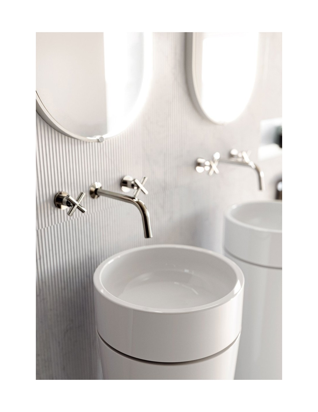 Gulvmonteret rund væg fritstående håndvask i keramik H88,5 x Ø29,5 cm - Blank hvid
