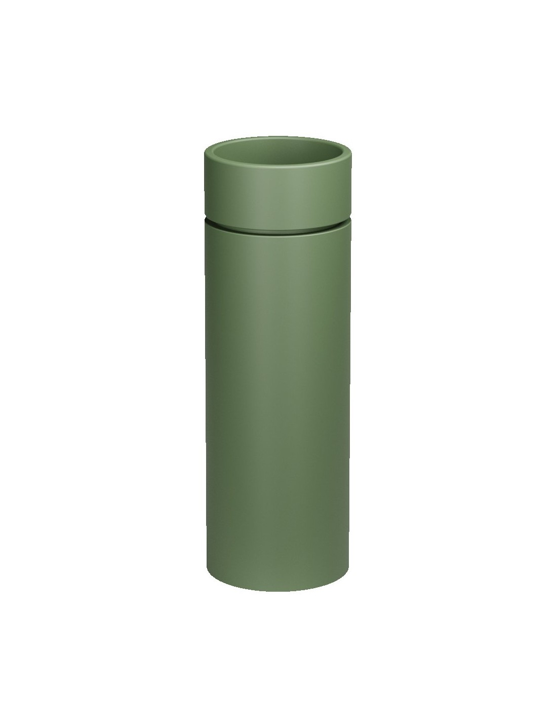 Gulvmonteret rund fritstående håndvask udført i et moderne design af mat grøn keramik. Håndvasken måler 88,5 cm i højden og 29,5 cm i diameter. Håndvasken leveres med pop-up bundventil. Denne model er til montering med afløb/rørføring via bagside på håndvasken (åbning på bagside).