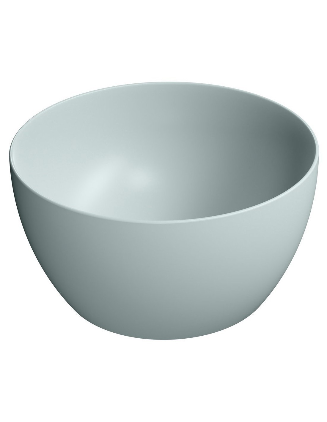 Bordmonteret rund håndvask udført i et moderne design af mat isblå sanitær keramik. Håndvasken måler 42 cm i diameter. Håndvasken leveres med pop-up bundventil.
