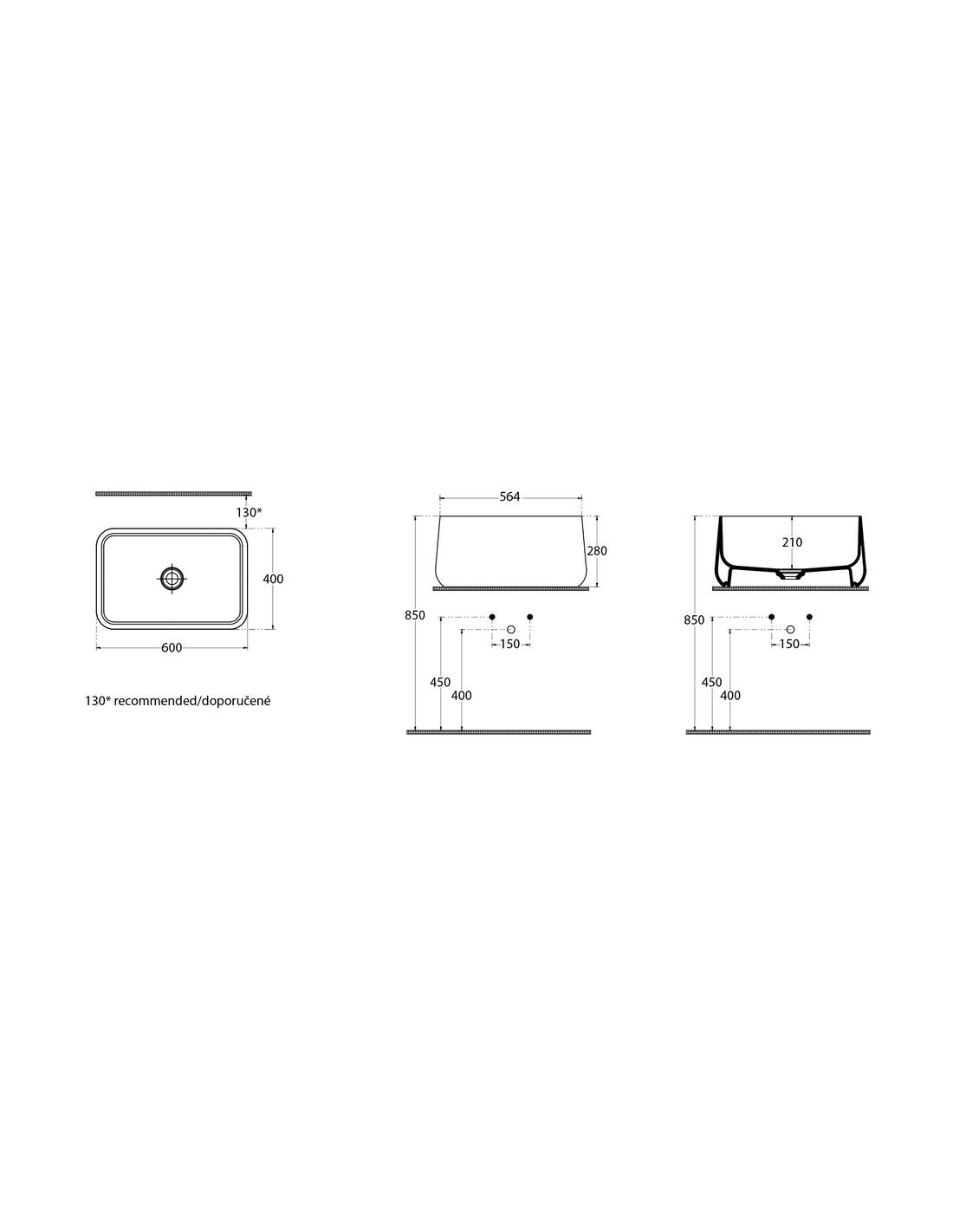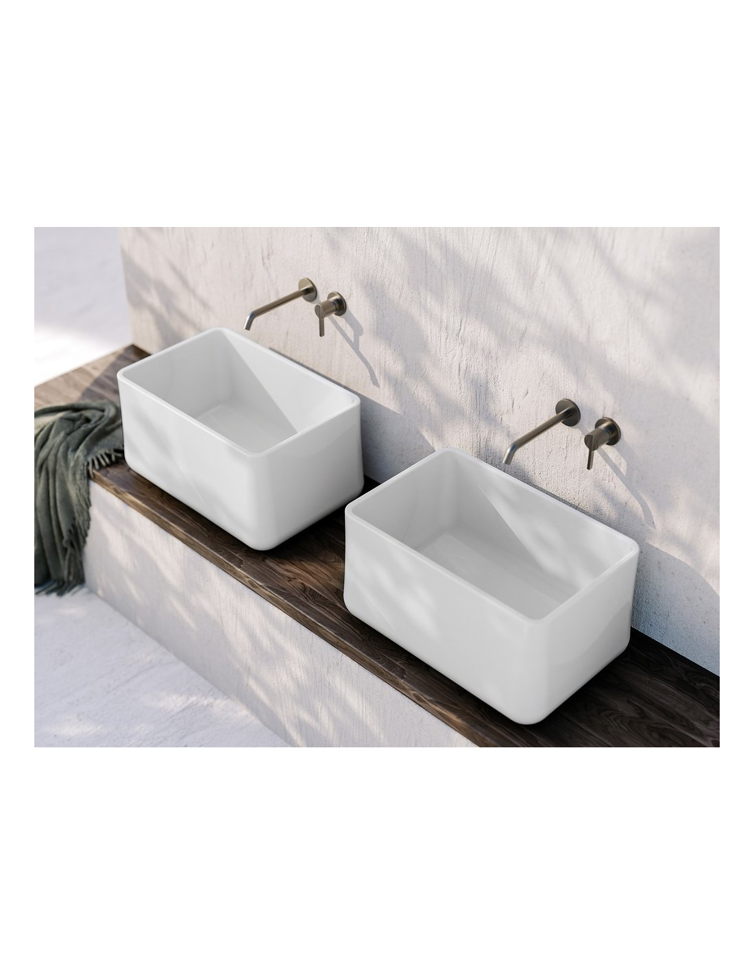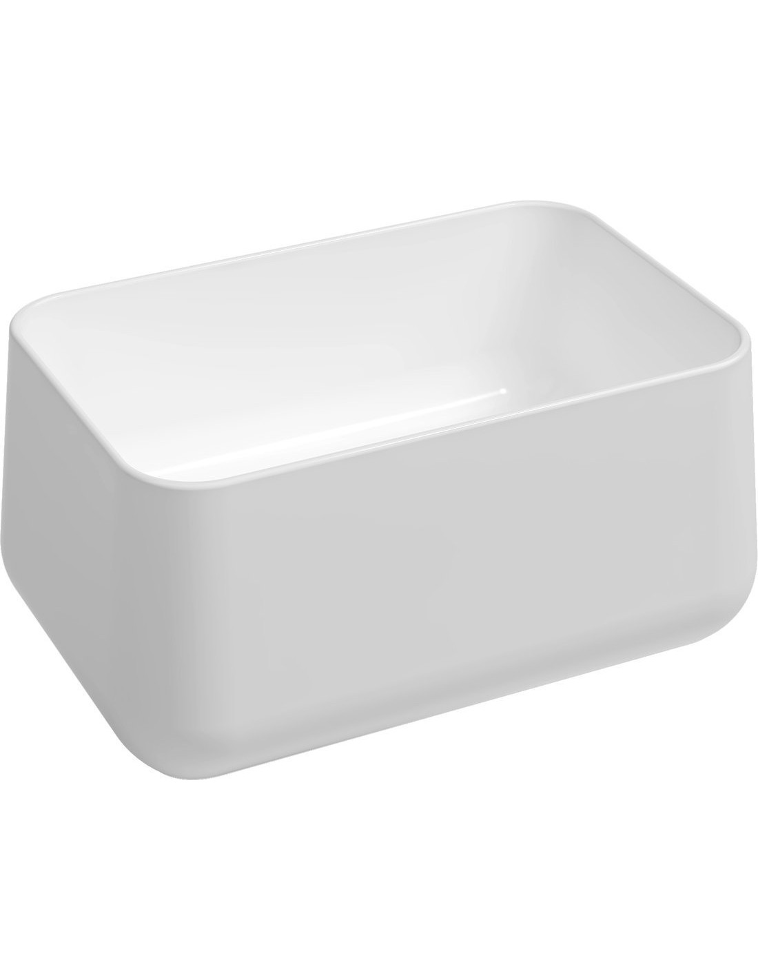 Bordmonteret håndvask udført i et moderne design af hvid sanitær keramik. Håndvasken måler 60 x 40 cm i bredde og dybde. Håndvasken leveres med pop-up bundventil.