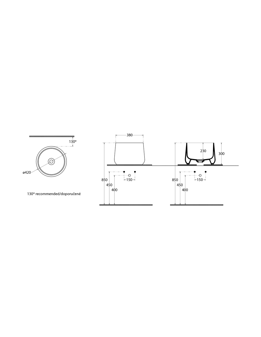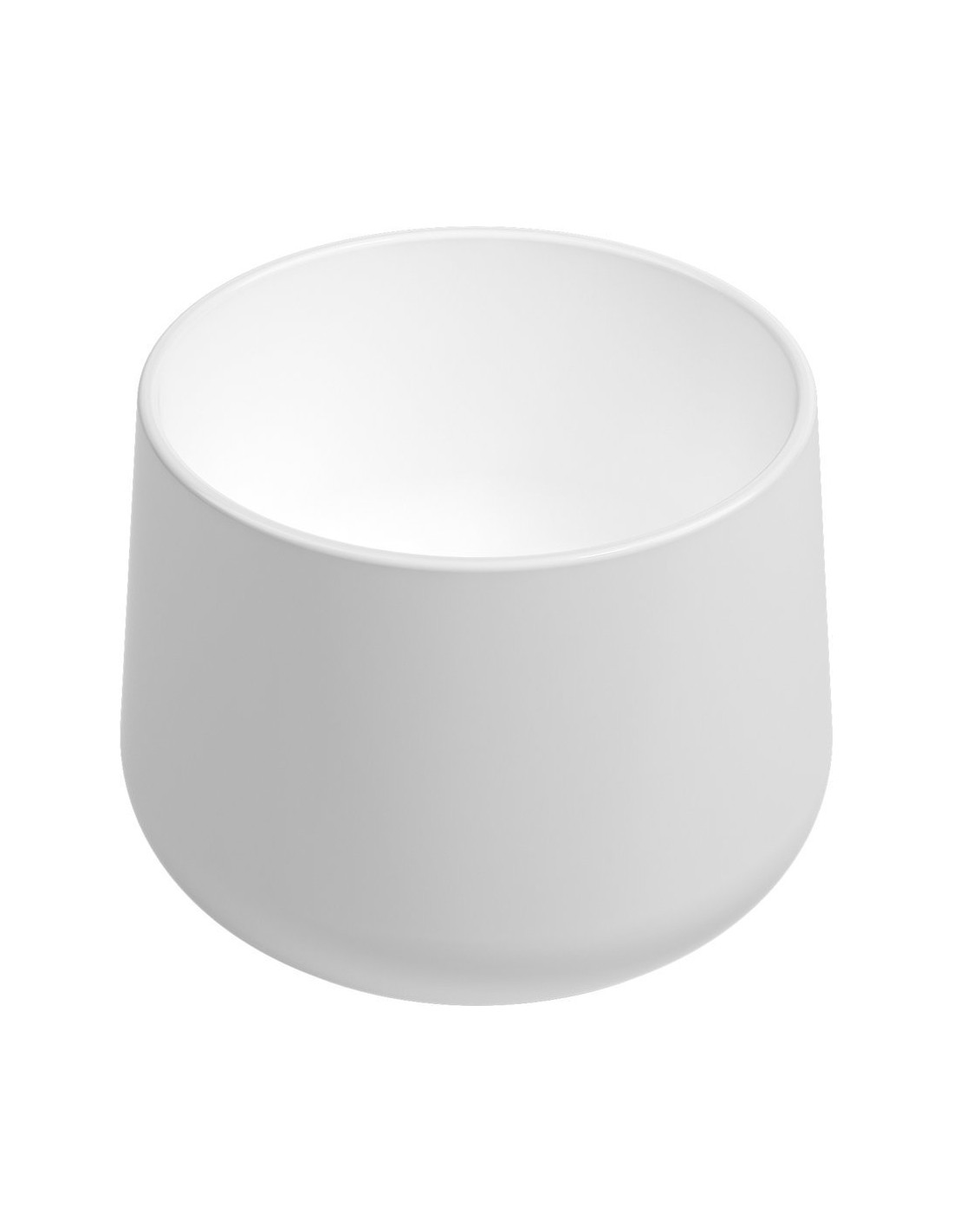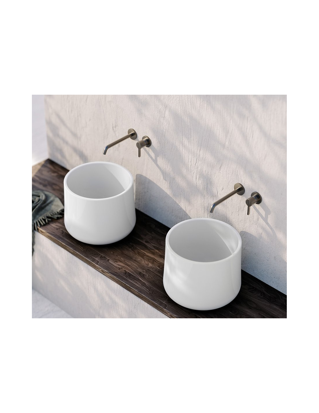 Bordmonteret rund håndvask udført i et moderne design af hvid sanitær keramik. Håndvasken måler 42 cm i diameter. Håndvasken leveres med pop-up bundventil.