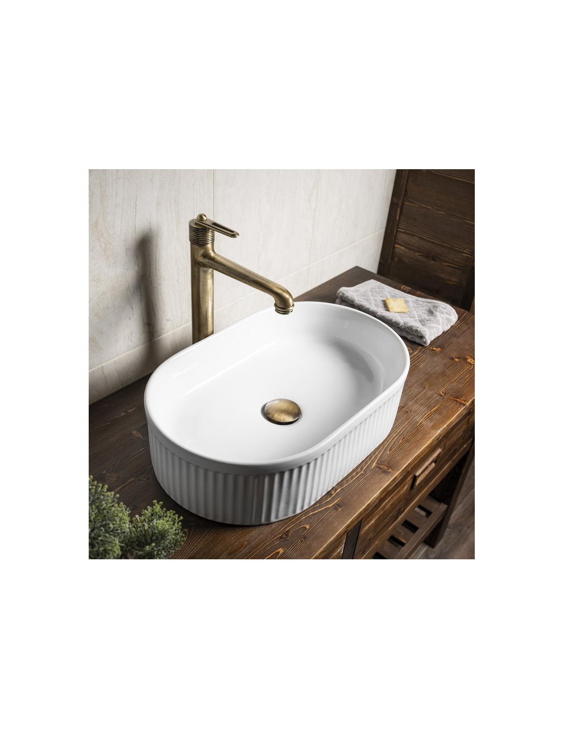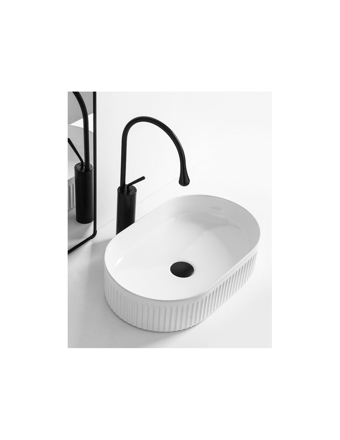 Bordmonteret oval håndvask i keramik 49 x 31 cm - Hvid
