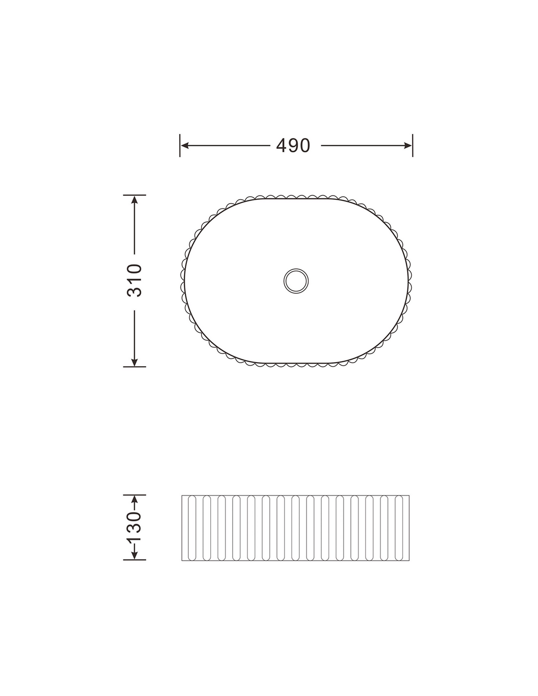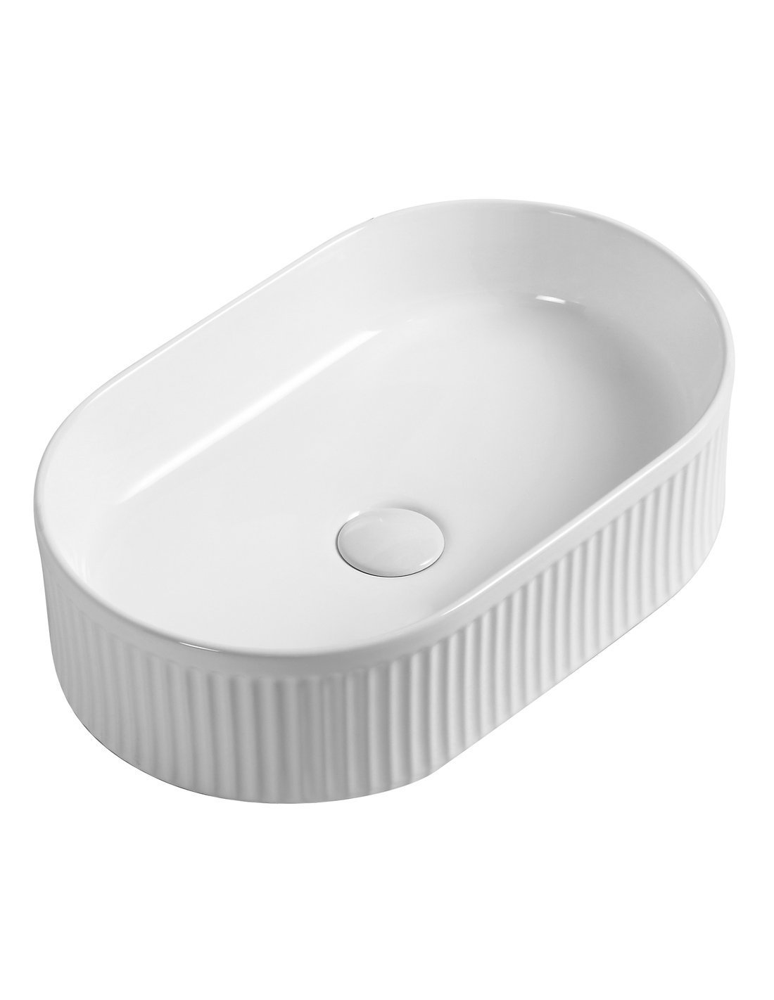 Bordmonteret oval håndvask udført i et moderne design af hvid sanitær keramik. Håndvasken måler 49 x 31 cm i bredde og dybde. Håndvasken leveres med pop-up bundventil.