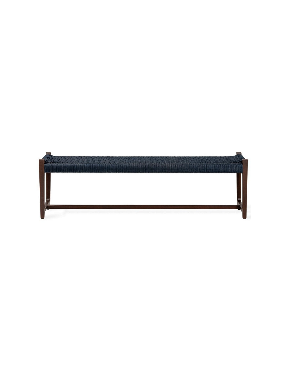 KUWANA Havebænk udført i et moderne design af brunlakeret teaktræ og mørk indigoblå olefin reb, der er både UV-resistent og vandafvisende. Bænken måler 47 cm i højden og 160 x 42 cm i bredde og dybde. Teaktræ er naturligt resistent overfor fugt, men vi anbefaler dog, at bænken opbevares tørt henover vinterperioden.