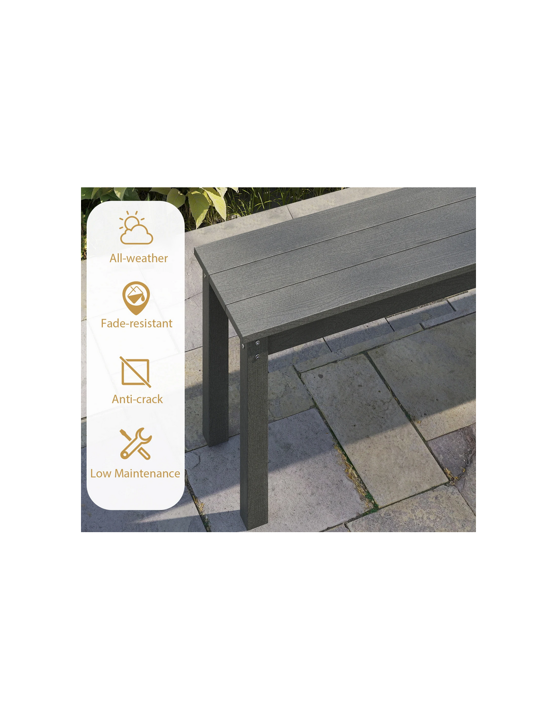 Havebænk i metal og HDPE 140 x 35 cm - Grå