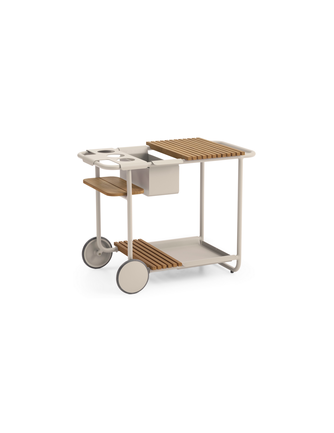 SANTORINI Barbord på hjul i aluminium og teaktræ B90,4 x D46,5 x H68 cm - Sand/Teak