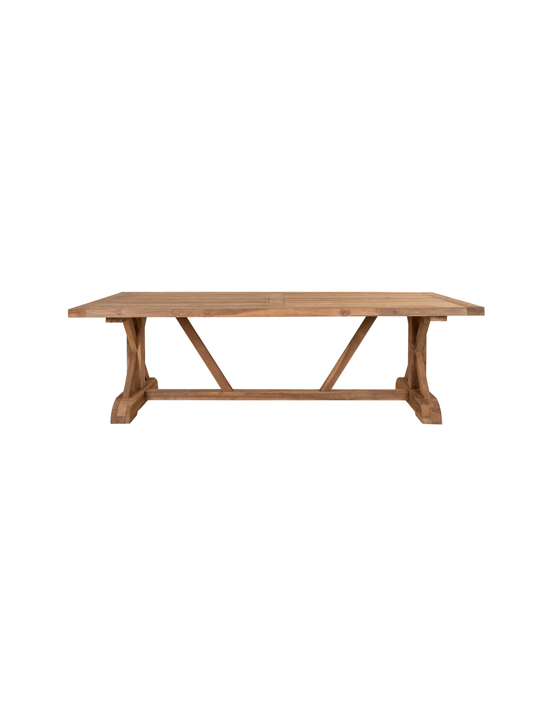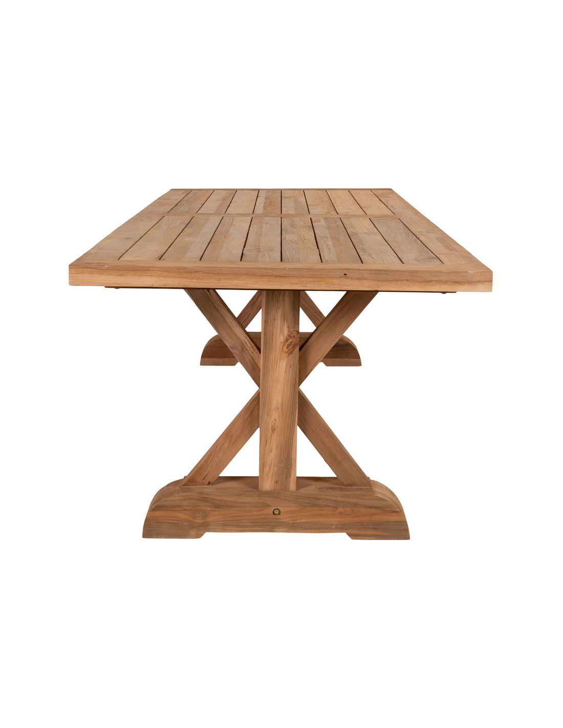 Havebord udført i et design af genanvendt teaktræ. Havebordet måler 75 cm i højden og 240 x 100 cm i bredde og dybde. Et rummeligt havebord med god plads til gæster - kombinér eventuelt med havestole i teaktræ.