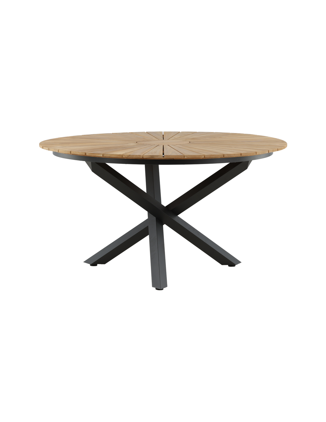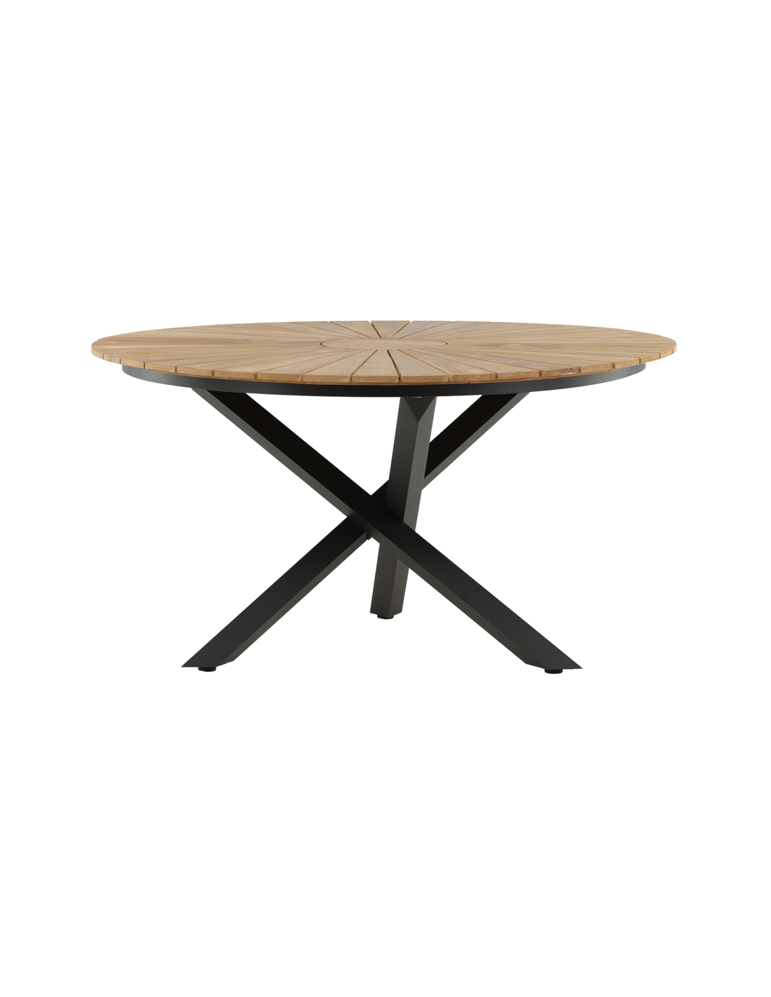 MEXICO Rundt havebord udført i et moderne design af sort pulverlakeret aluminium og med bordplade i teaktræ. Havebordet måler 75 cm i højden og 140 cm i diameter.