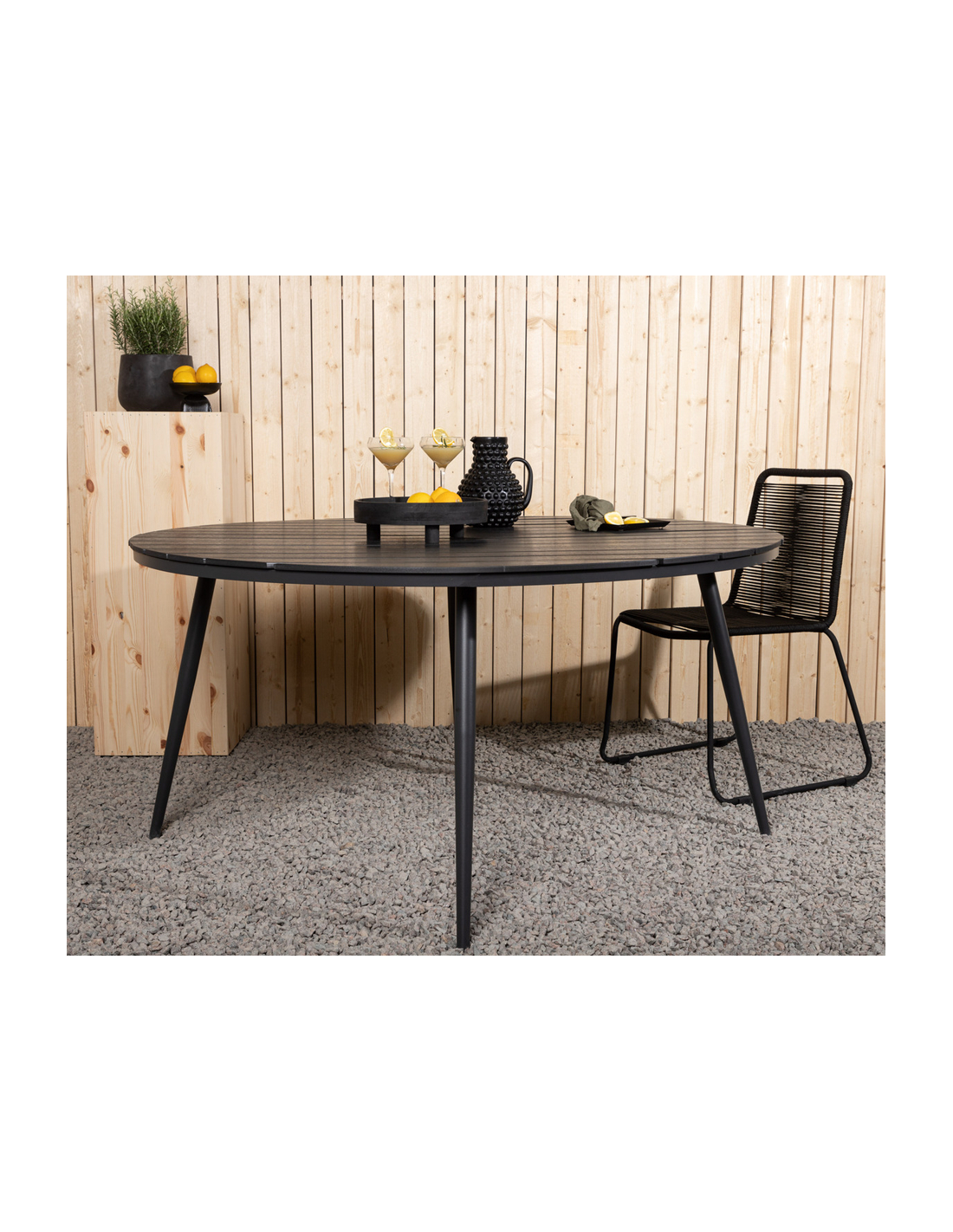 BREA Rundt havebord i aluminium og aintwood H75 x Ø150 cm - Sort